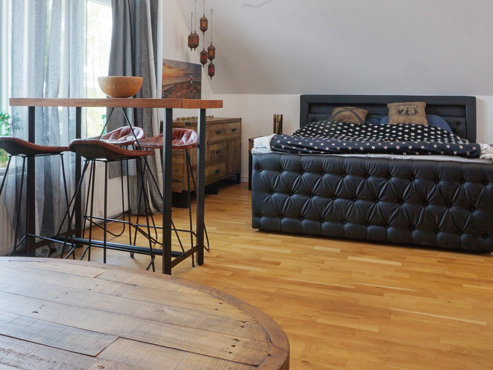Lägenheten ligger på övervåningen, och består av ett rum där det finns en dubbelsäng och en bäddsoffa, ett barbord med 4 stolar, en köksdel med allt man behöver. I det fräscha badrummet finns tvättmaskin och torktumlare.