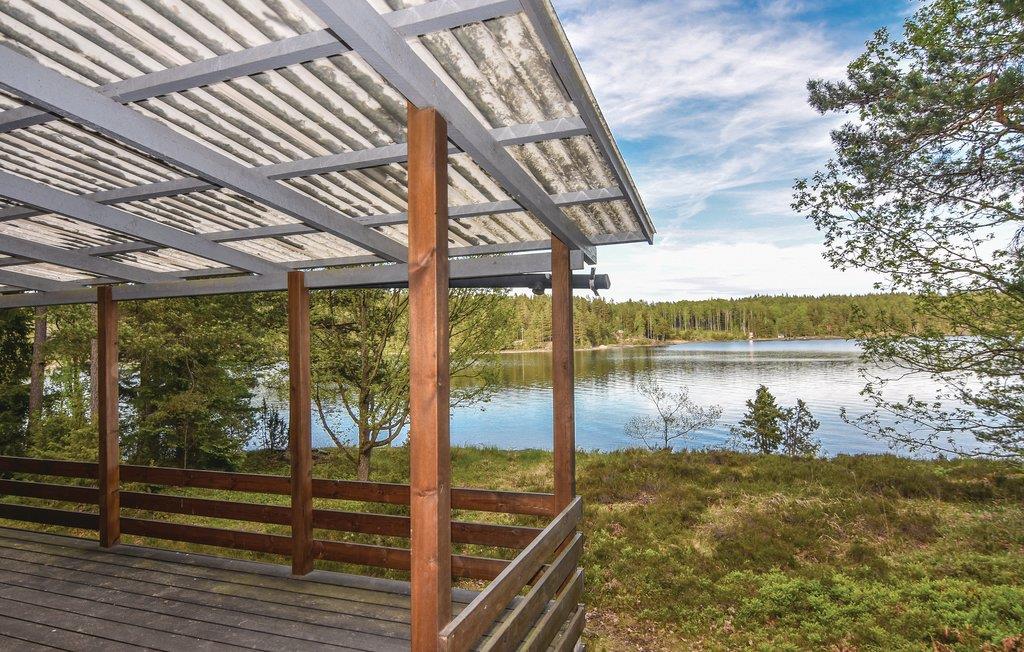 Vil du oppleve en ferie i naturen og med spennende flora og fauna i Sverige? Dette feriehuset har en fantastisk beliggenhet og panoramautsikt over innsjøen Ånimmen. Huset ligger på en strandtomt. Et av soverommene ligger i uthuset, det andre i hovedhuset hvor du også finner kjøkken og stue. Utenfor har du en stor, herlig terrasse med tak, slik at du kan tilbringe herlige kvelder med familie og venner. Dette uberørte området er tett skogkledd, og du kan lett lete etter bær og spiselig sopp. Det sies også at det finnes elg her.