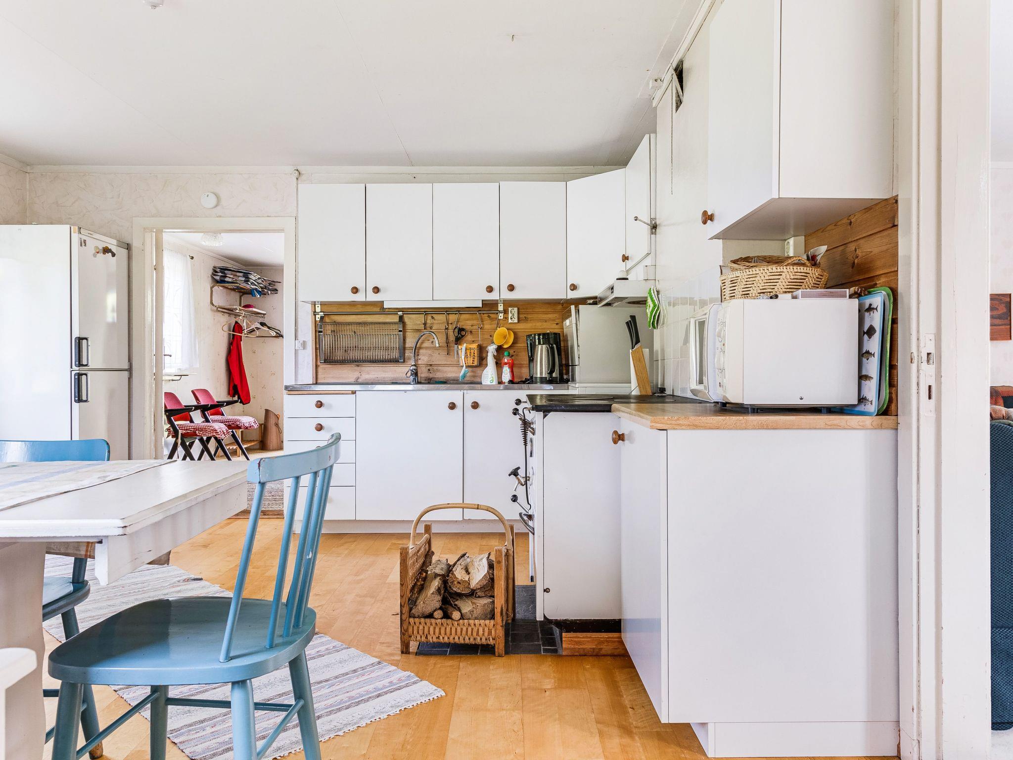 "Vassviken", 3-room house 90 m2 on 2 levels. Bright, practical furnishings: living/sleeping room with 1 double sofabed and satellite TV. Kitchen (4 hot plates, oven, dishwasher, microwave, freezer, electric coffee machine) with dining table, wood-burning stove. Shower/WC. Electric heating. Upper floor: 1 room with sloping ceilings with 1 double bed. 1 room with sloping ceilings with 1 bed and 1 x 2 bunk beds, 1 sleeping facility (80 cm, length 180 cm). Wooden floors. Facilities: washing machine, baby cot. Internet (WiFi, extra). Please note: non-smoking house. Smoke alarm. Freezer approx. 120 l. Rowing boat: approx. 1.6 km distant.