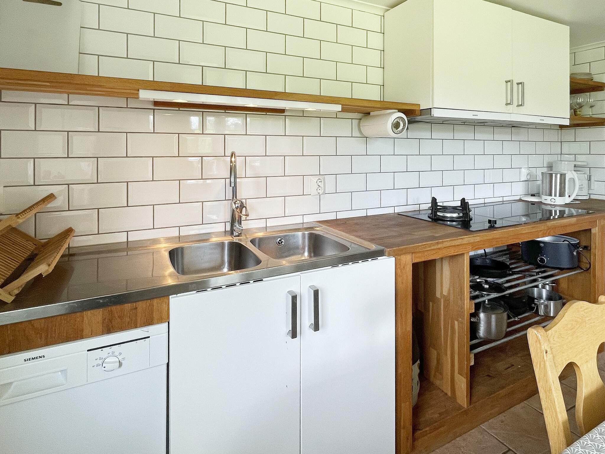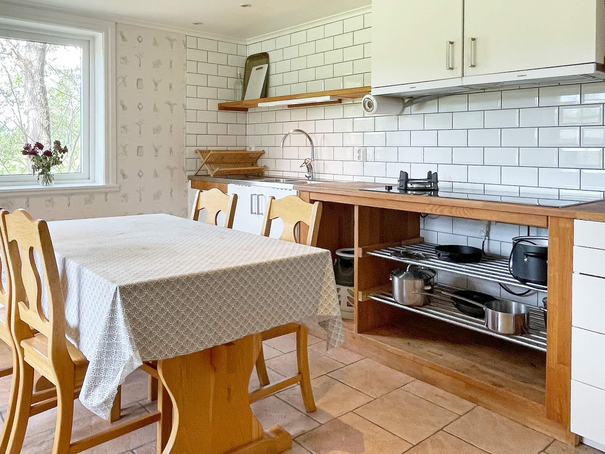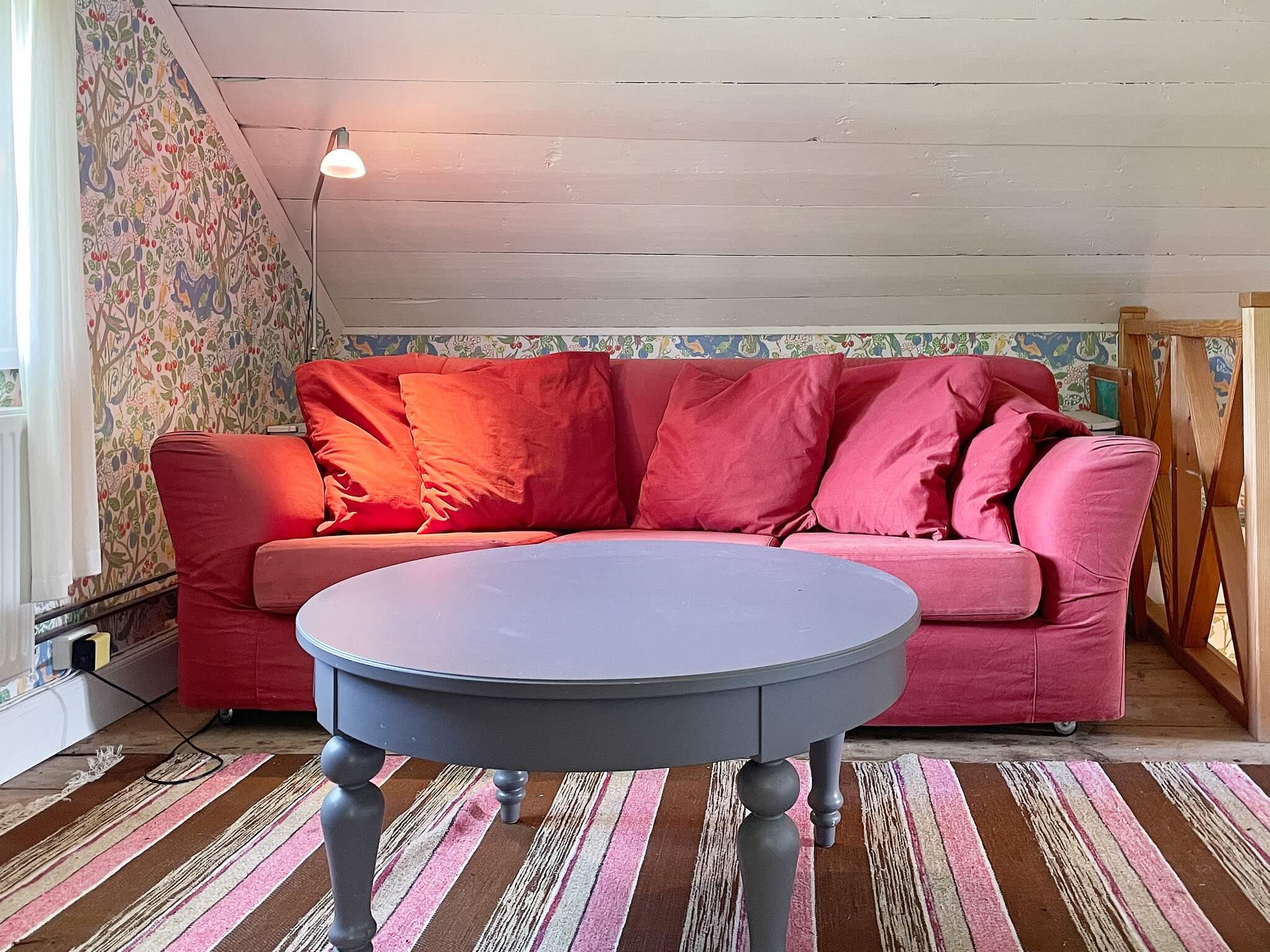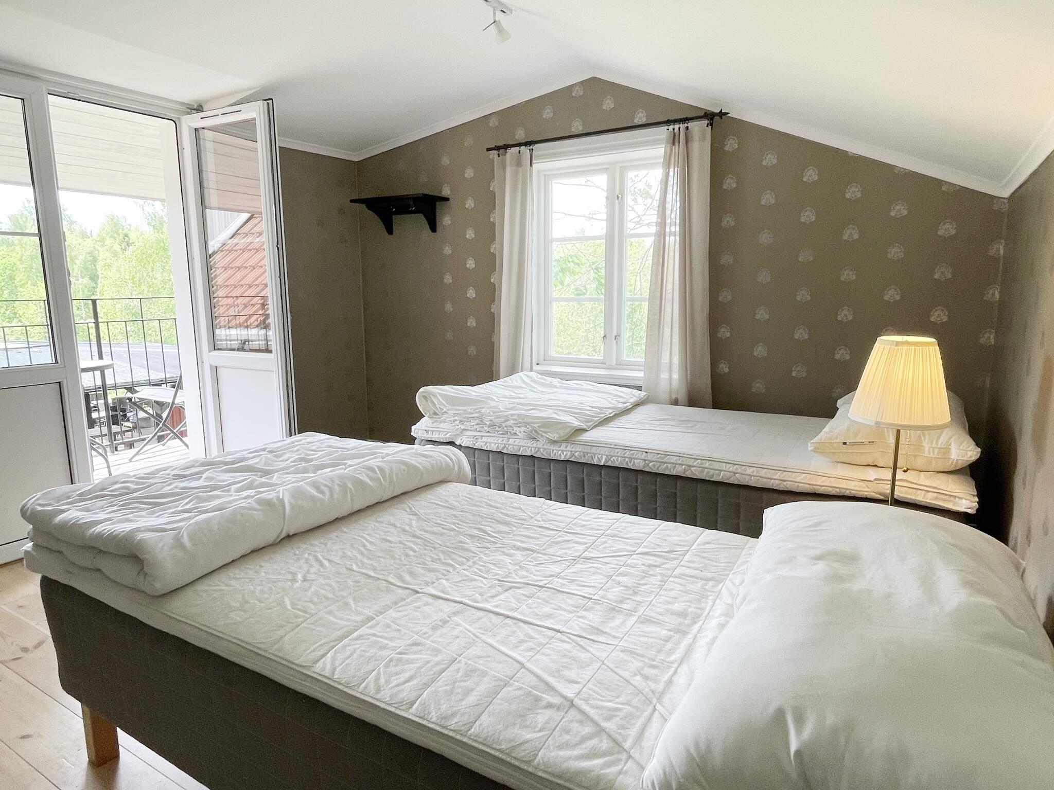 Huset har tre sovrum ett rum med dubbelsäng och de andra rummen med enkelsängar som är lätta att sätt ihop till en dubbelsäng. Allrummet på övreplan har en soffa, Tv och Wifi. Altanen och balkongen har utsikt över sjön och den fantastiska innergården. Det finns två badrum med dusch och tvättmaskin. I köket finns allt som behövs och intill ligger det gamla köket med vedspis och äldre charm. Hela gården och byn har natursköna omgivningar för en promenad eller cykeltur. Fyrbenta vänner är inte tillåtna inne i huset men det finns en stor hundgård med plats för tre hundar som ni gärna får låna.