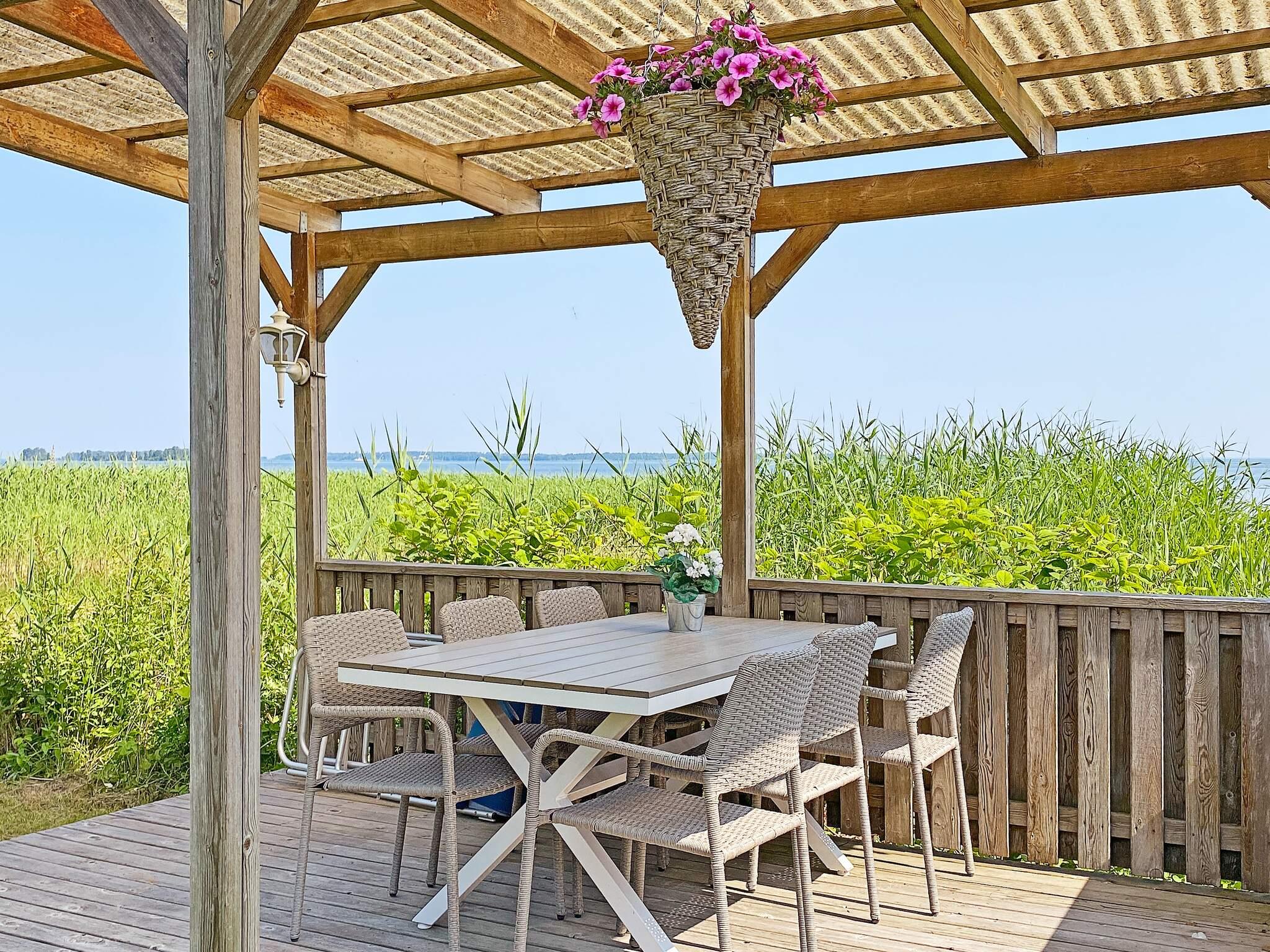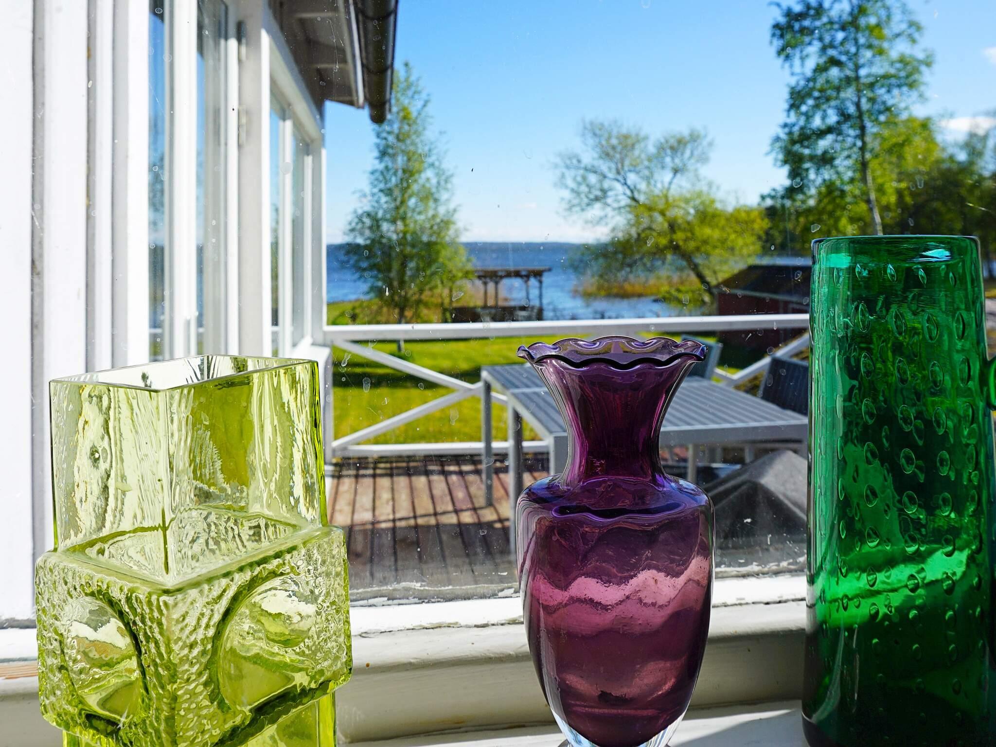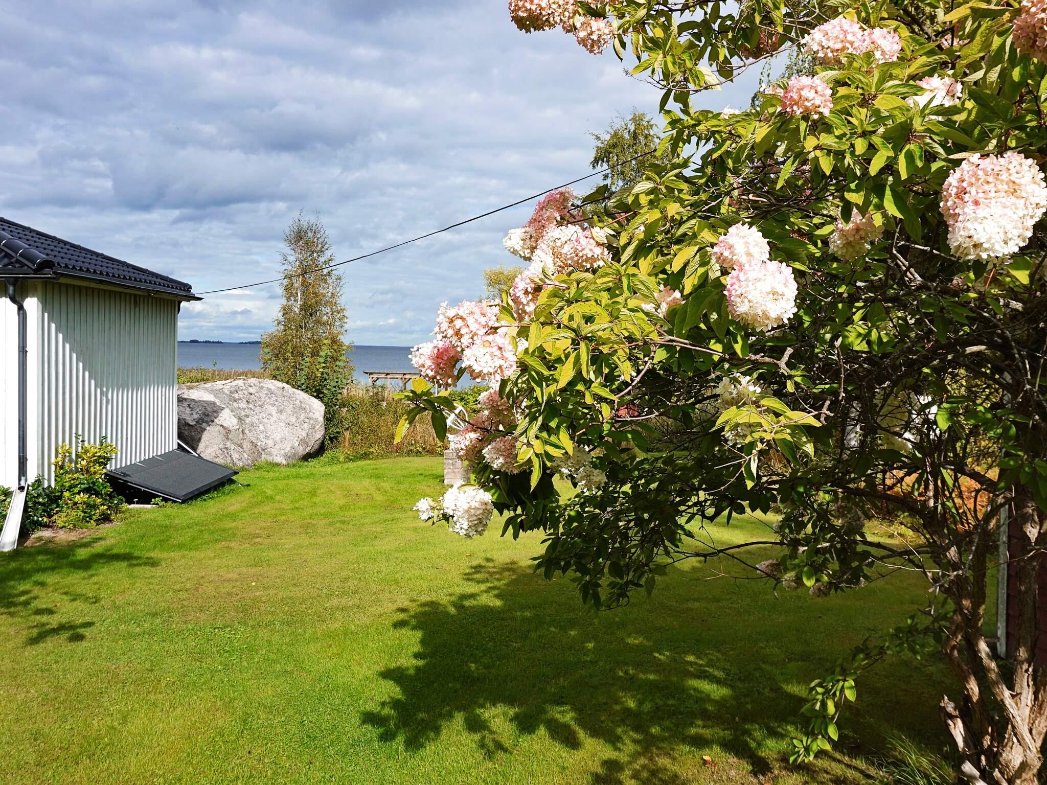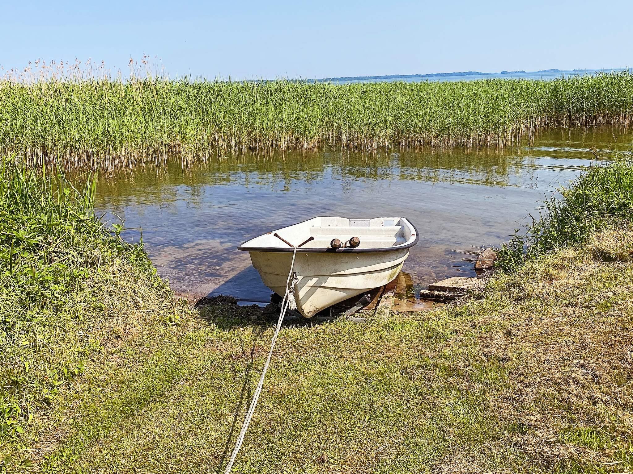 Att sitta ute på altanen med panorama utsikt ned till sjön med något gott i glaset när middagen förbereds på kolgrillen är livskvalitet. Nere vid sjön finns en pergola med matbord och stolar, närmare vattnet än så här kommer du inte utan att bli blöt om fötterna. Den lilla roddbåten som ingår i hyran ligger intill gräspiren och från den kan du ta dig ut på sjön, vill du fiska så är fritidsfisket fritt i Hjälmaren. Det finns också flytväster till 4 personer. Du kan bada efter strandkanten, men det är inte någon iordninggjord strand. Badskor kan vara en idé att ta med för den som vill bada direkt från nere vid piren.