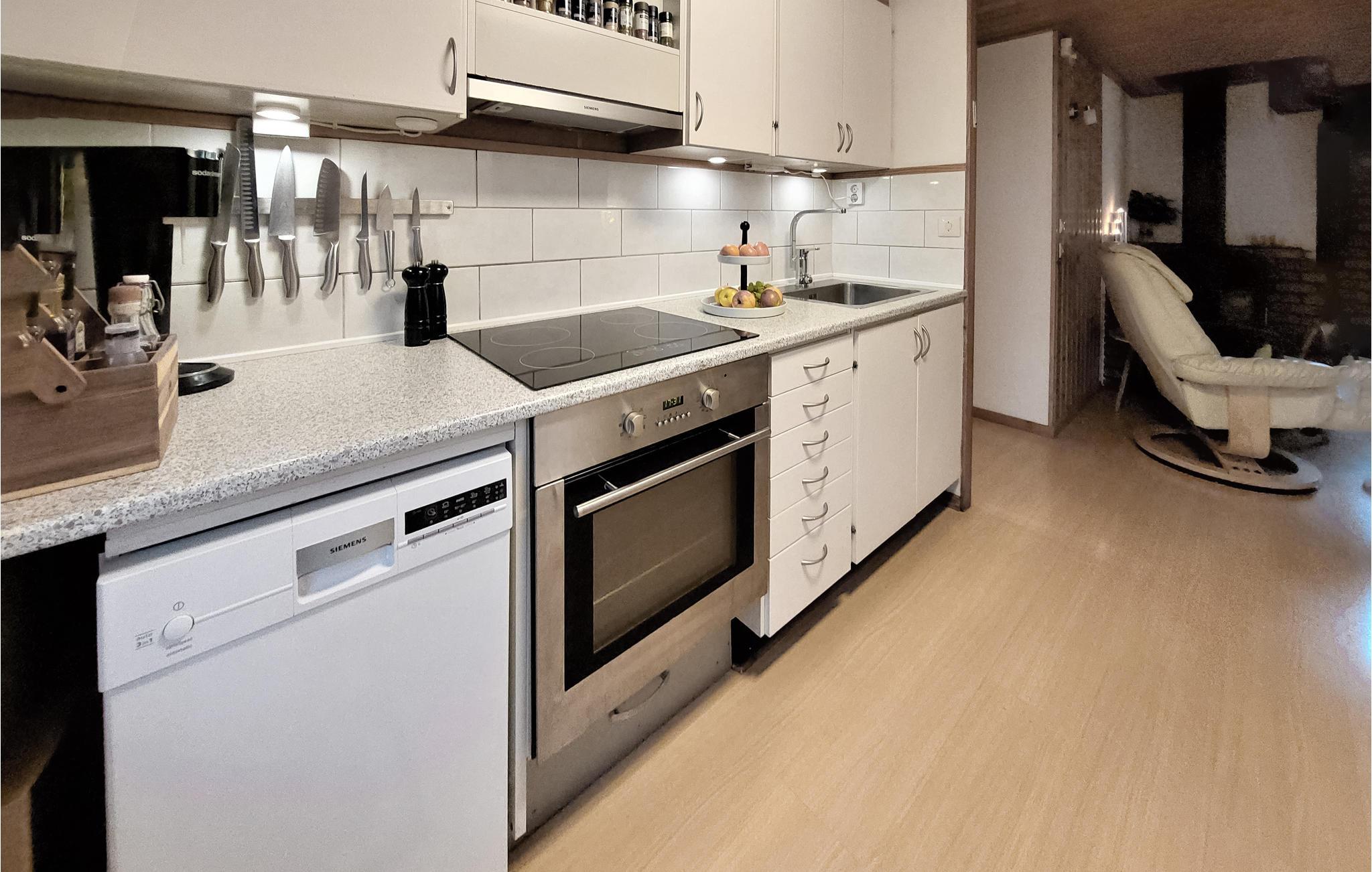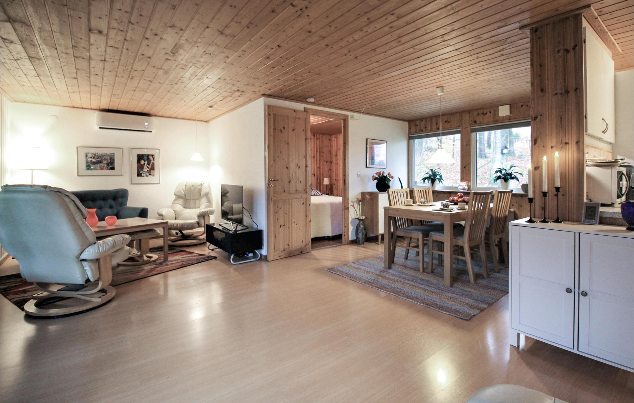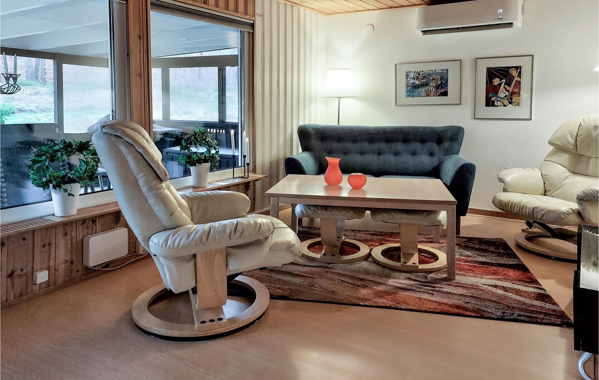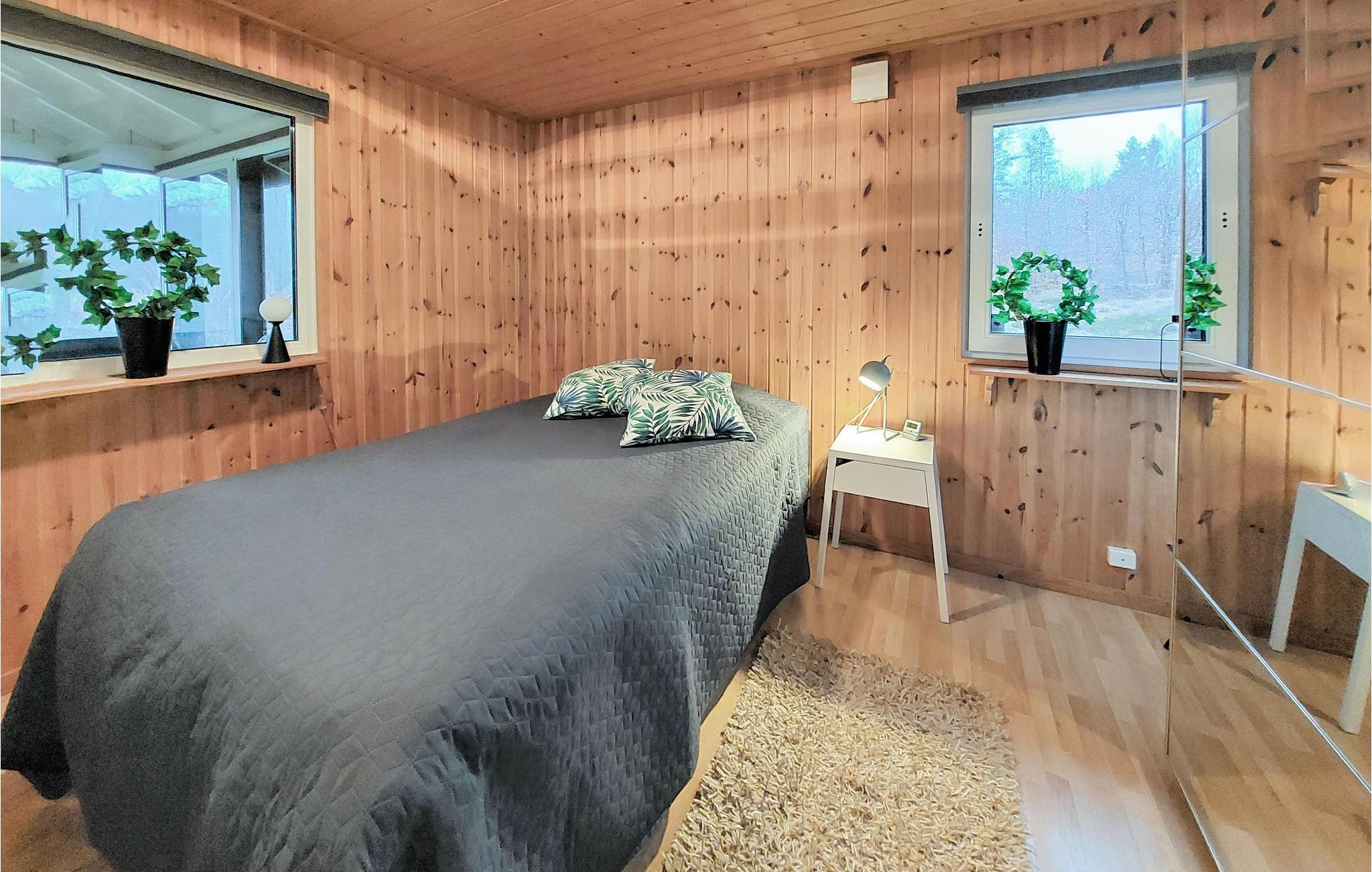 Det innbydende huset ønsker deg velkommen i en vakker beliggenhet nær en innsjø. De lyse rommene og hjemmekoselige møblene vil få deg til å føle deg som hjemme. Slapp av her omgitt av natur og bruk huset til vakre utflukter i området. Om kvelden inviterer den komfortable sofaen deg til å sitte lenge sammen mens vedovnen utstråler sin koselige varme og la dagen ende sammen.