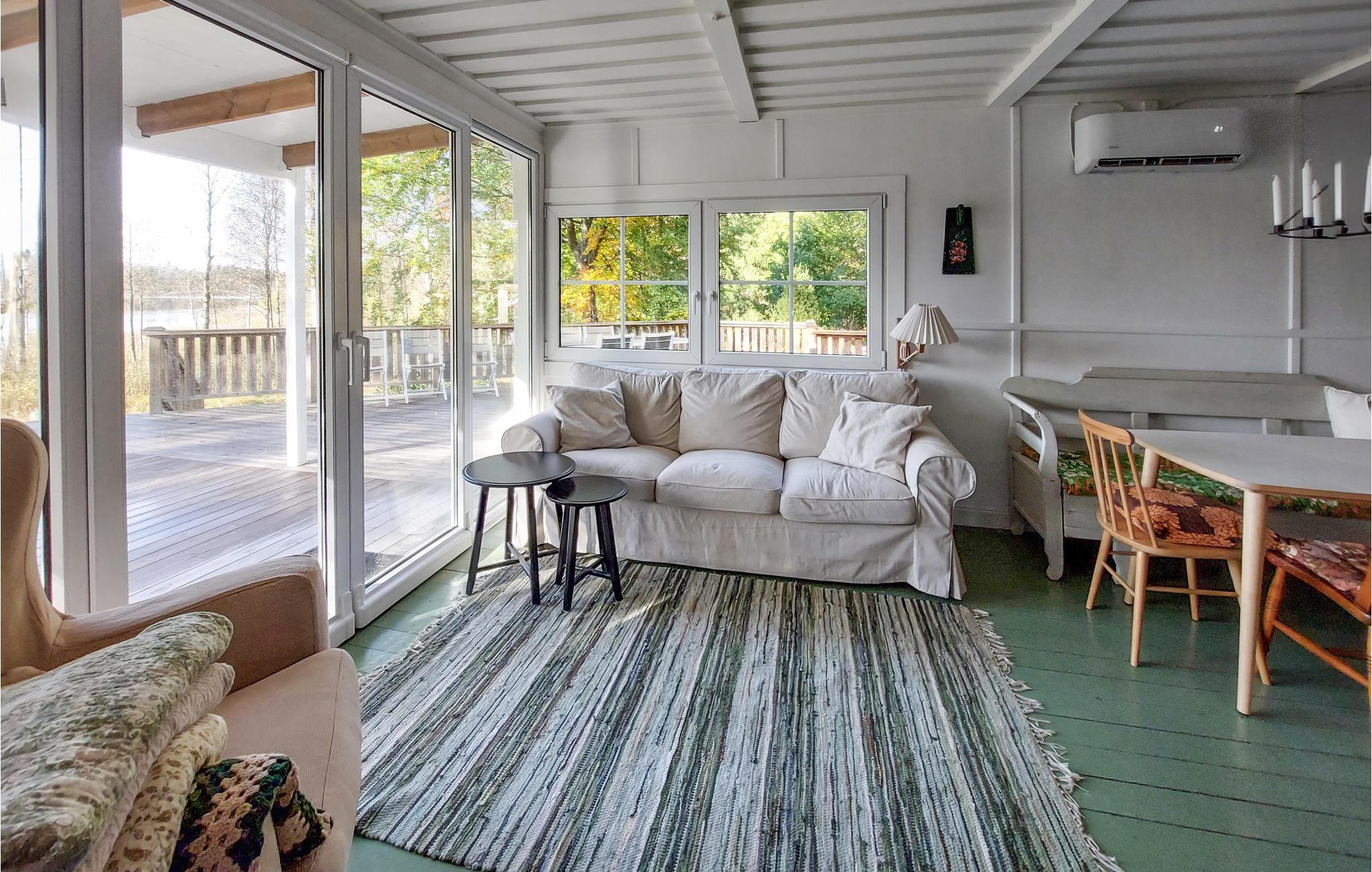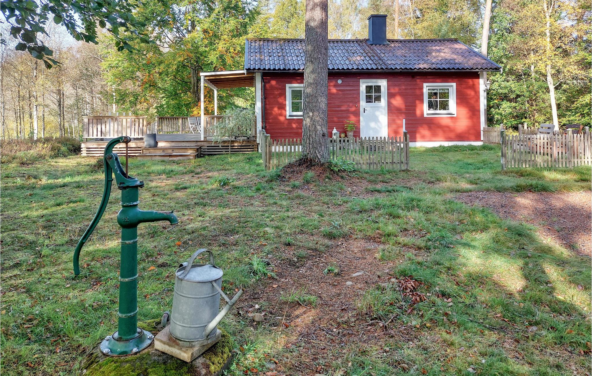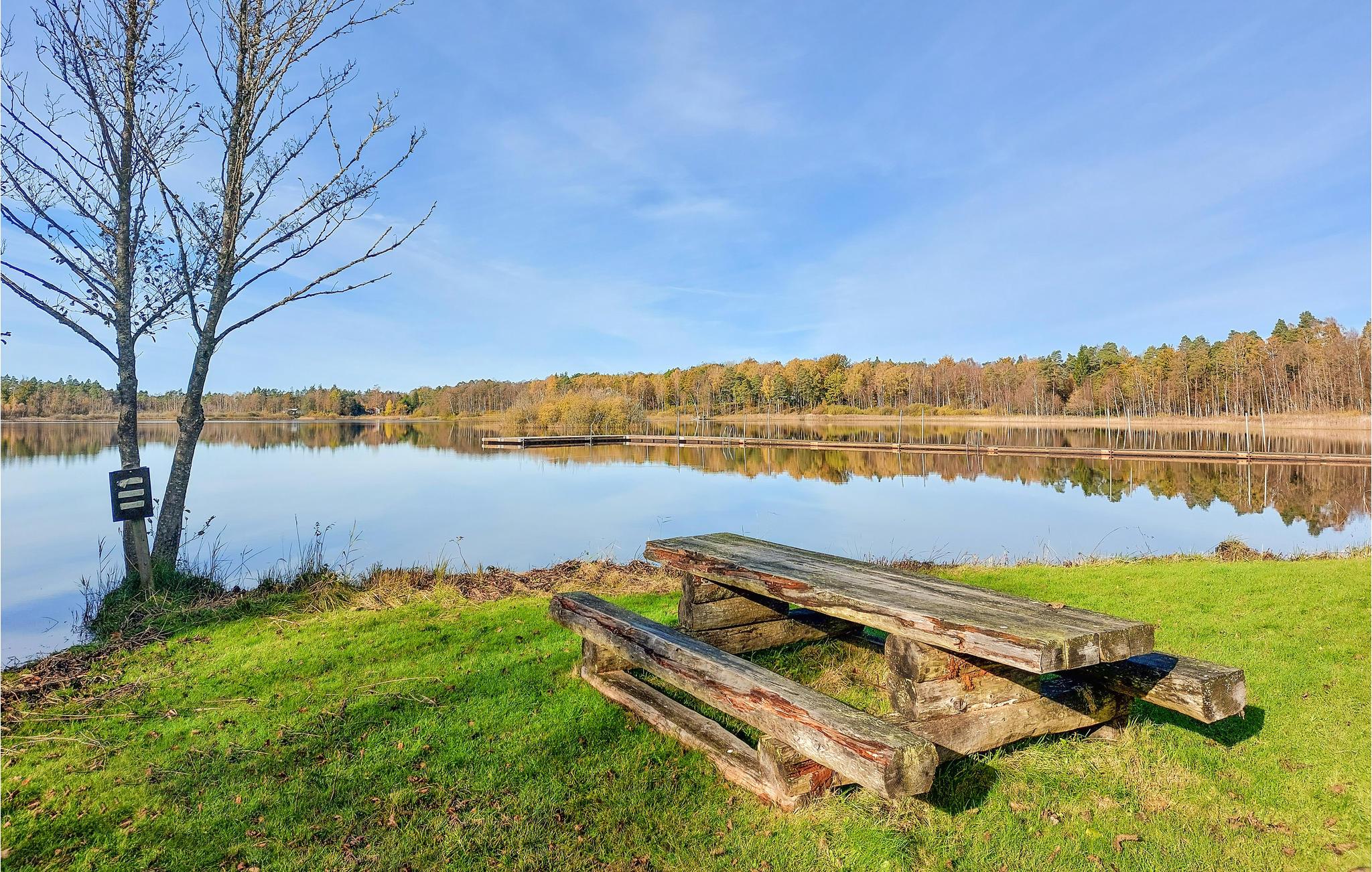 Ut med stresset og inn med drømmeaktig ro! På en vakker, stor naturtomt, bare noen få skritt fra Hultasjøen, ligger dette trivselshuset med lyse, komfortabelt innredede rom. Dagslyset strømmer inn i stuen gjennom de store vinduene, og du kan oppleve den pittoreske naturen på nært hold. Nyt en lang frokost i stuen og se morgentåken sakte stige opp fra innsjøen. Den vakre, store terrassen med panoramautsikt over innsjøen og de tette tretoppene blir din andre stue og sentrum for de fleste fellesaktiviteter. På tomten er det anlagt et lite "cowboyland" der store og små kan boltre seg. Gå de få skrittene ned til innsjøen og kast fiskesnøret i vannet. Hvis du er heldig, kan du grille den nyfangede fisken i kveld. Hvis du ikke vil fiske, kan du plukke sopp og bær eller bade i innsjøen. Du finner en badeplass med brygger bare noen minutters gange fra huset. Turstien rundt innsjøen går rett foran huset.