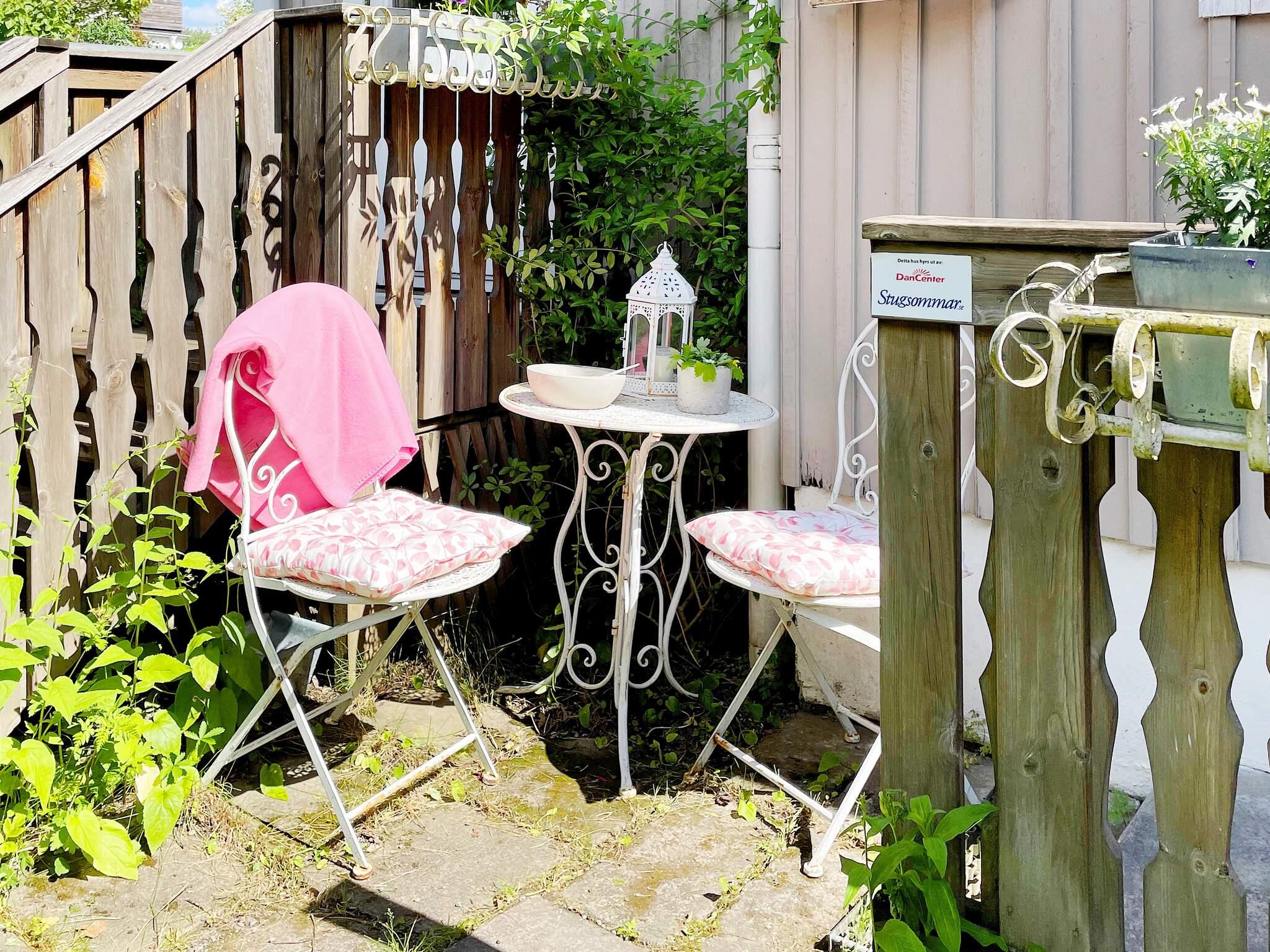 Ni välkomnas av trevligt caféset invid trappan som leder er ner till lägenheten. Hall som leder er till ett charmigt pentry med kokplattor, kyl med frysfack och micro m.m. Rymligt badrum med duschkabin, wc, handfat och tvättmaskin. Vidare in i lägenheten finner ni ett trevligt allrum med matbord, tv och bekväm bäddsoffa för en person (100 cm). Här ifrån når ni ett sovrum med två enkelsängar (90 cm) samt en hopfällbar extrabädd (80 cm). Garderob finns i sovrum och hall. Förutom ett caféset i anslutning till trappan finns även en del i trädgården med utemöbel ni kan disponera över, i trädgårdens vänstra del då ägaren disponerar över trädgården till höger.