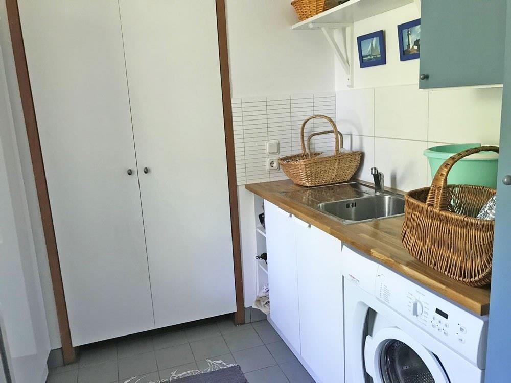 Vier der Schlafzimmer sind mit jeweils zwei Einzelbetten ausgestattet, die bei Bedarf auch zusammengestellt werden können. Drei weitere Zimmer verfügen über Einzelbetten. Für Kleinkinder kann auf vorherige Anfrage ein Gitterbett zur Verfügung gestellt werden. Die Küche ist ausgestattet mit Elektroherd, zwei Backöfen, Kühlschrank, Geschirrspüler, Mikrowelle, Kaffeemaschine und Toaster. Ein Esstisch sowie ein Kinderhochstuhl sind ebenfalls vorhanden. Vom Küchenbereich führt ein direkter Ausgang auf die große Veranda mit Meerblick. Im Wohnzimmer erwarten dich eine gemütliche Sitzgruppe, ein großer Esstisch, ein offener Kamin und ein TV. Zusätzlich gibt es einen separaten Clubraum mit Billardtisch für gesellige Abende. Die beiden Badezimmer sind jeweils mit Dusche, WC und fließend warmem Wasser ausgestattet. Außerdem gibt es einen Haushaltsraum mit Waschmaschine und Trockner.