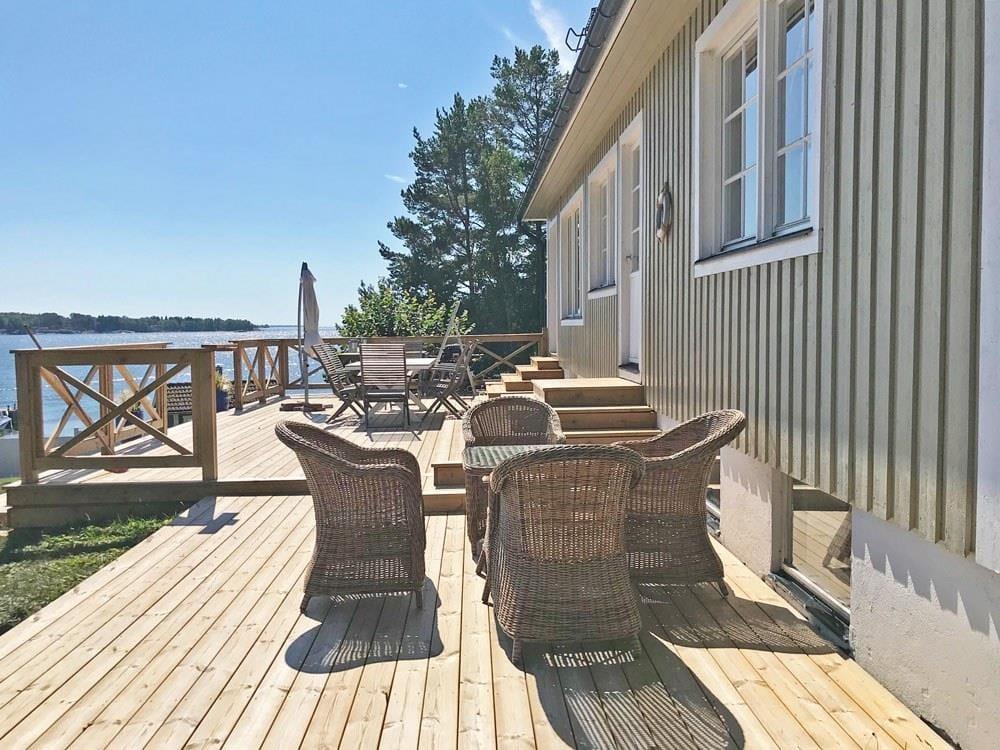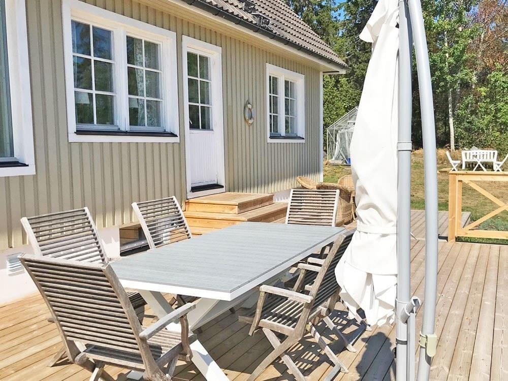 Das Ferienhaus Tjockö liegt in traumhafter Lage direkt am Meer – auf einer autofreien Schäreninsel in der Ostsee, wie aus Astrid Lindgrens „Ferien auf Saltkrokan“ entsprungen. Das etwa 2000 m² große Grundstück bietet einen unverbauten Blick auf den Schärengarten und direkten Zugang zum Wasser – die kinderfreundliche Badestelle ist nur etwa 40 m entfernt. Der nächste Nachbar, das Ferienhaus des Vermieters, ist etwa 50 m entfernt, aber dennoch sichtgeschützt.