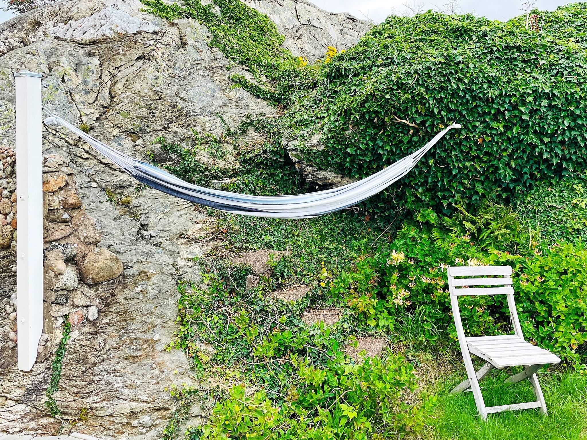 I annexet finns en våningssäng och en enkelsäng, samt ett badrum med dusch, tvättställ, toalett och tvättmaskin. Två charmiga dubbeldörrar kan ställas upp på vid gavel för att insupa havsluften. Den inhägnade trädgården är perfekt för gäster med hundar, och ägarens hund mår väldigt gott här.