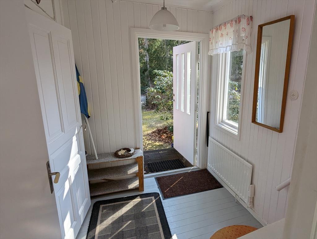 Das sich auf einem etwa 1.200 m² großen Grundstück in ruhiger, ländlicher Lage befindende, 1931 erbaute typisch rot-weiße frühere Wohnhaus mit etwa 75 m² Wohnfläche wurde vor etwa 10 Jahren gründlich und liebevoll renoviert und dabei der Charme des Hauses weitgehend bewahrt. Hier finden bis zu vier Erwachsene und ein Kind Platz; ein Hund darf auf Wunsch auch mitreisen. Im Erdgeschoß des Hauses befinden sich ein großes, helles Wohnzimmer mit Sitzecke, Esstisch, Flat-TV mit schwedischen Kanälen und Chromecast, DVD-Spieler und Radio, die gut ausgestattete Küche mit Elektroherd mit Glaskeramikkochfeld und Backofen, Mikrowelle, Kühl- Gefrierkombination, Kaffeemaschine und Wasserkocher sowie ein modernes Badezimmer mit Duschkabine, WC und Handwaschbecken. Von einem kleinen Flur im Obergeschoss zweigen die beiden, jeweils mit zwei bequemen Einzelbetten ausgestattete Schlafzimmer ab. Ein Kinderbett kann zusätzlich gestellt werden, ebenso ein Kinderhochstuhl. Alle Zimmer sind mit Elektroheizkörpern ausgestattet;der vorhandene Kaminofen ist nicht benutzbar. Den Gästen stehen außerdem ein Internetzugang über WLAN, eine Waschmaschine, Gartenmöbel und Holzkohlegrill sowie zwei Sonnenstühle zur Verfügung.