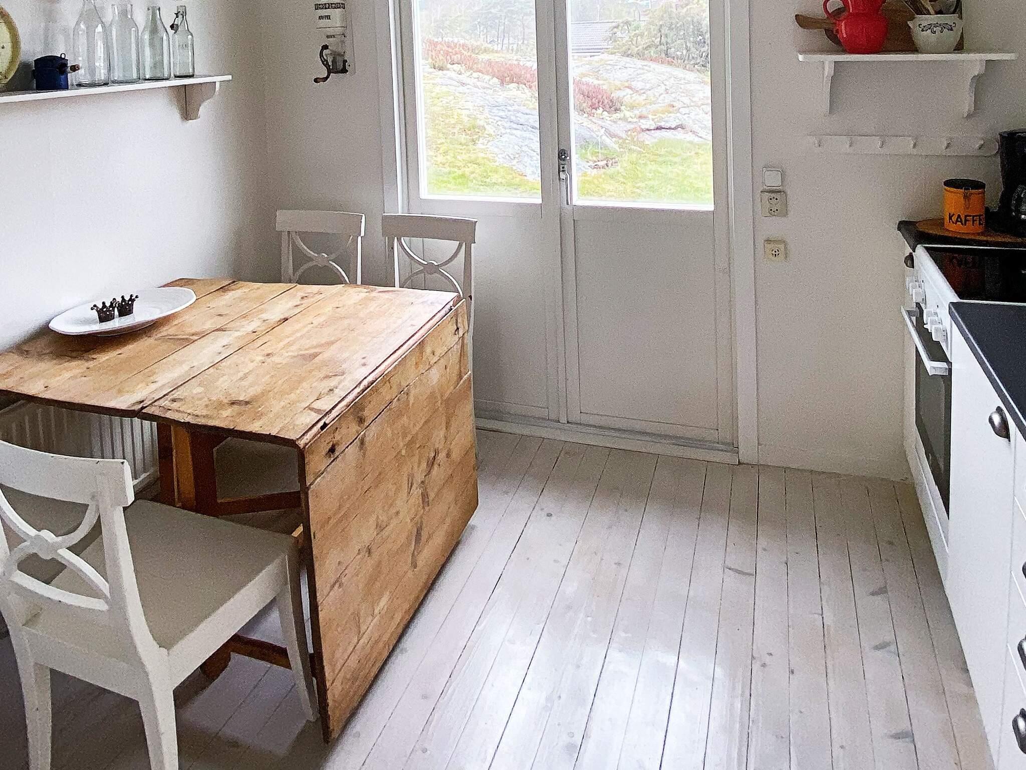 Köket har egen utgång till en mindre uteplats, perfekt för en skön sommarfrukost. Observera att detta är ett äldre hus och därför kan det vara dragigt utmed golvet. Elementen ska ej användas, utan det finns en luftvärmepump och man får hushålla med elen.