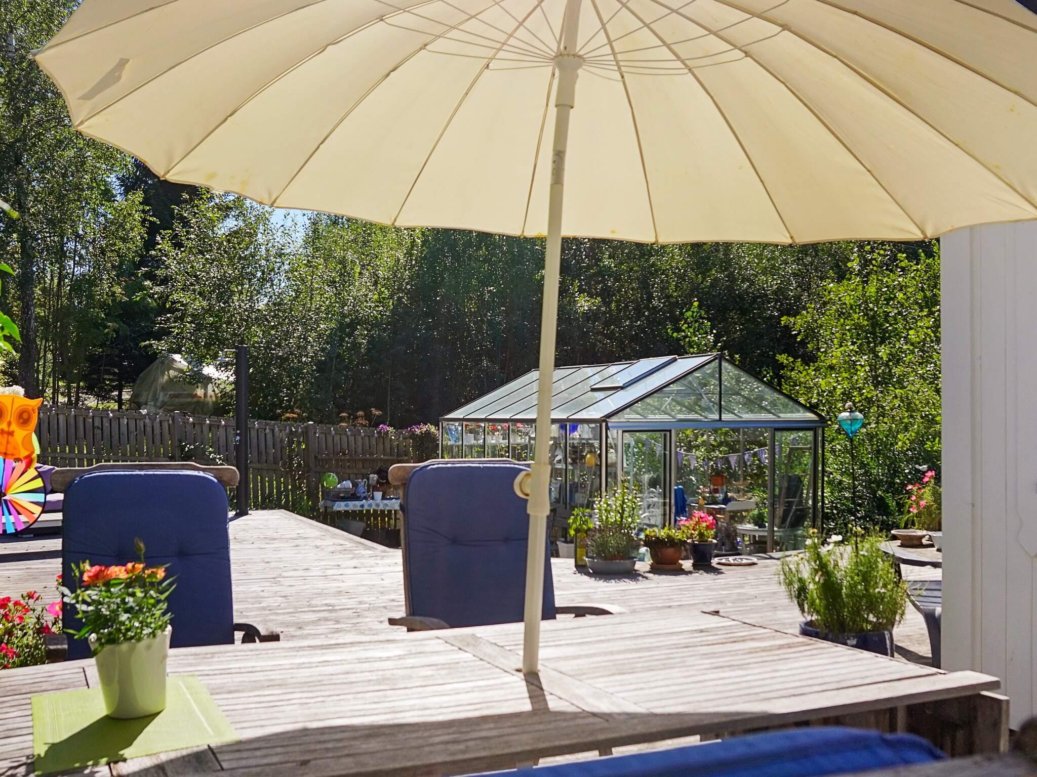 Stugan ligger ombäddad och insynsskyddad med mysig altan, utemöbler, utedusch, trevligt växthus med möbler och direkt in- och utgång till köket via altandörr.