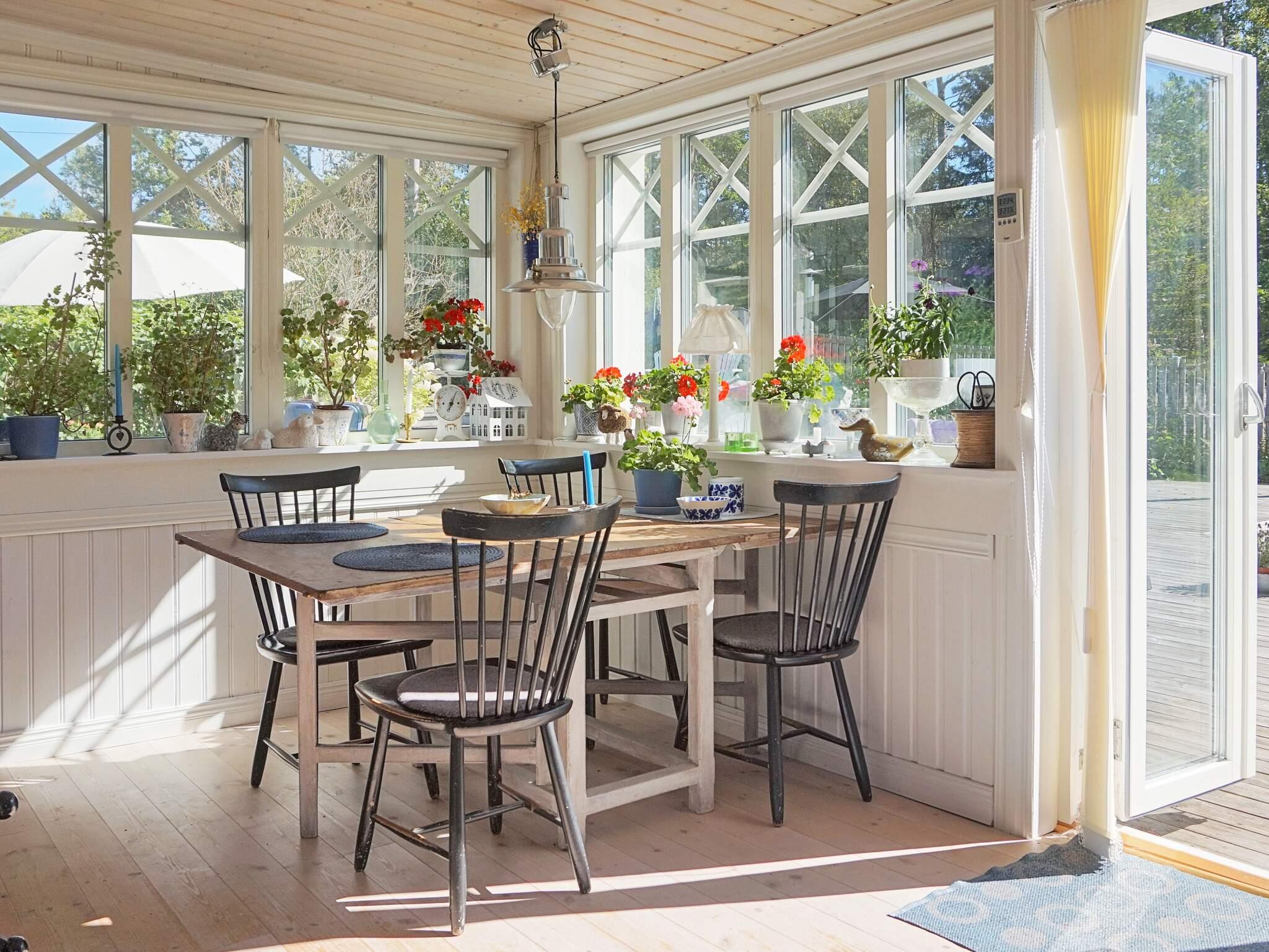 Ett stort och härligt vardagsrum uppdelat i tre rum. Den första med braskamin, fåtöljer och soffa för mysiga kvällar. I anslutning ligger husets bokrum med sällskapspel att umgås kring. Även en utgång till den inglasade verandan med möbler. Öppna innerdörrarna en solig morgon och lyssna på fågelkvittret eller när det regnar hämtar ni en bok och njuter av smattret på taket och lugnet. TV med soffa och fåtöljer i vinkel finns i den andra delen av vardagsrummet. Här finns en plats för alla.