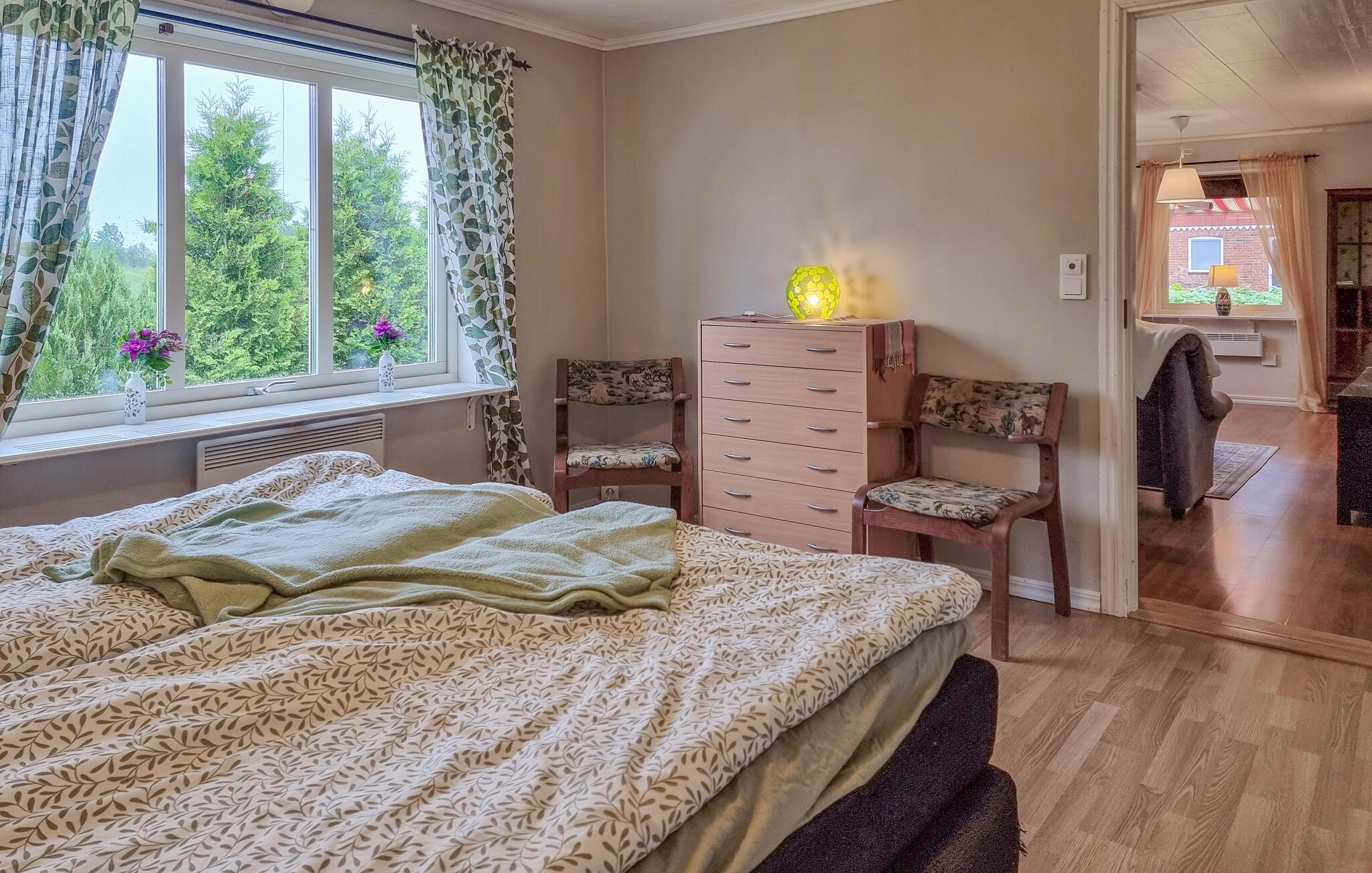 Velkommen til Falköping, hvor ren avslapning venter deg midt i det pittoreske landskapet. Det tradisjonelle svenske huset med sin innbydende veranda og romslige, velstelte tomt gir deg muligheten til å tilbringe en avslappende ferie. Begynn dagen med en koselig frokost mens du nyter den vidstrakte utsikten over åkrene. Ta inn de fredelige omgivelsene. Selve huset er kjærlig innredet og har en koselig stue med en komfortabel sofagruppe. Det lyse og moderne kjøkkenet innbyr til å tilberede måltider sammen. Føl deg som hjemme og opplev fredelige stunder i en familiær atmosfære.