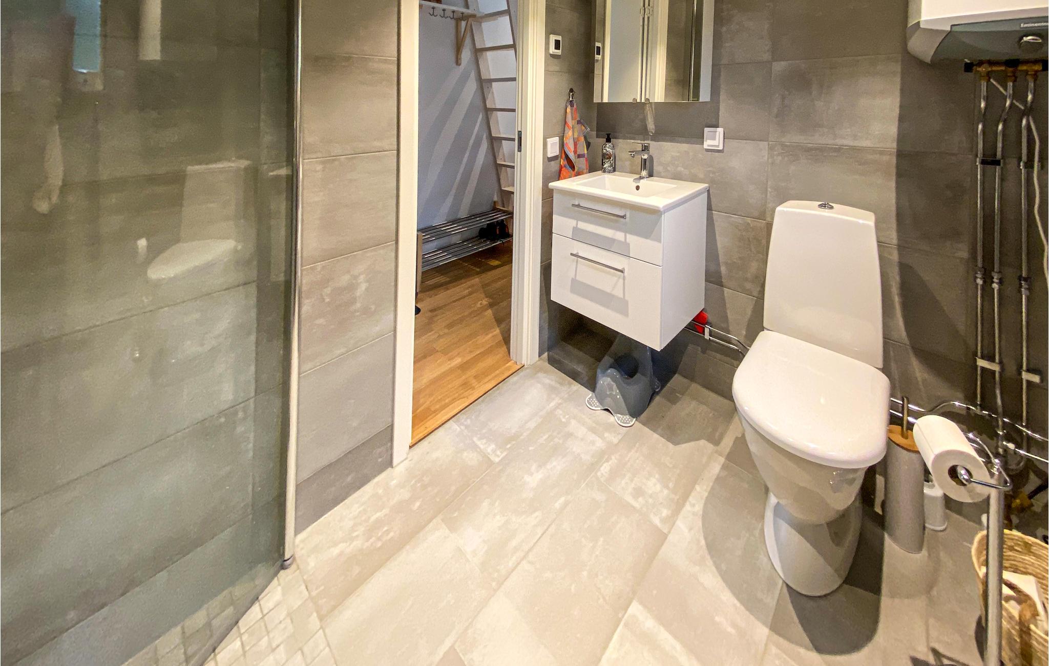 - WC med varmt og kaldt vann, Dusj