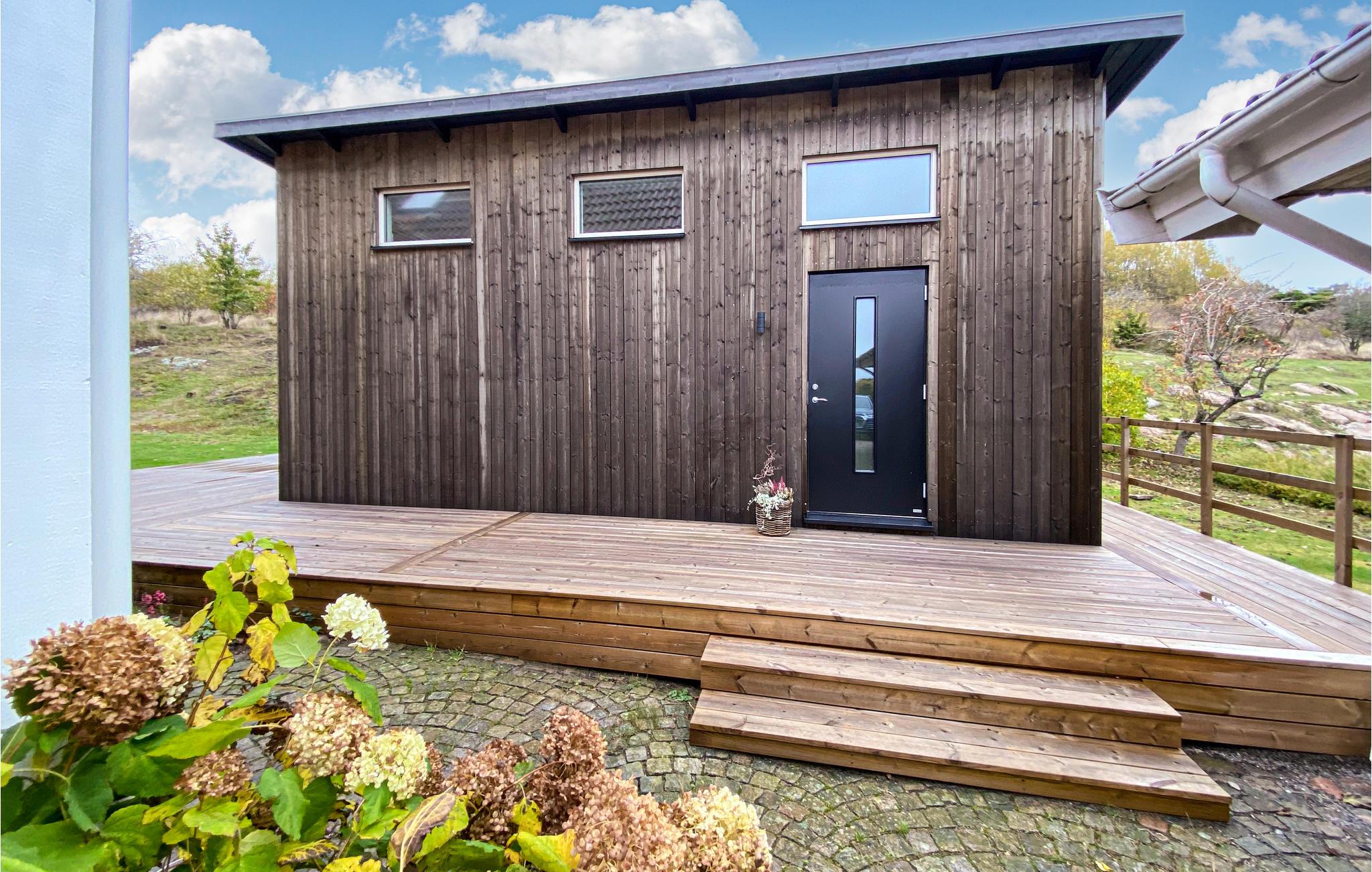 Dette moderne tinyhouse ønsker deg velkommen i en vakker hage med havutsikt fra eiendommen. Det vakre huset er moderne og fullt utstyrt og har plass til opptil fire personer. Hunden din er også hjertelig velkommen her.