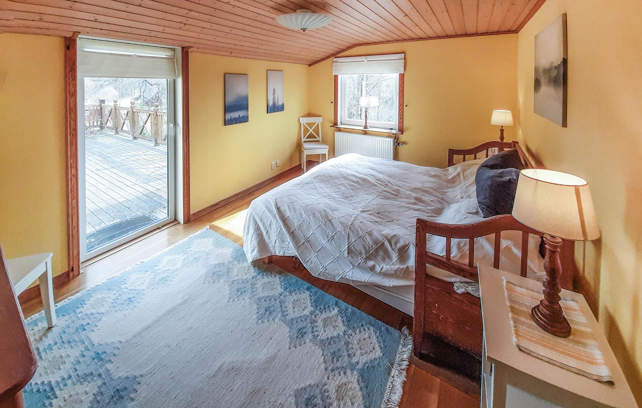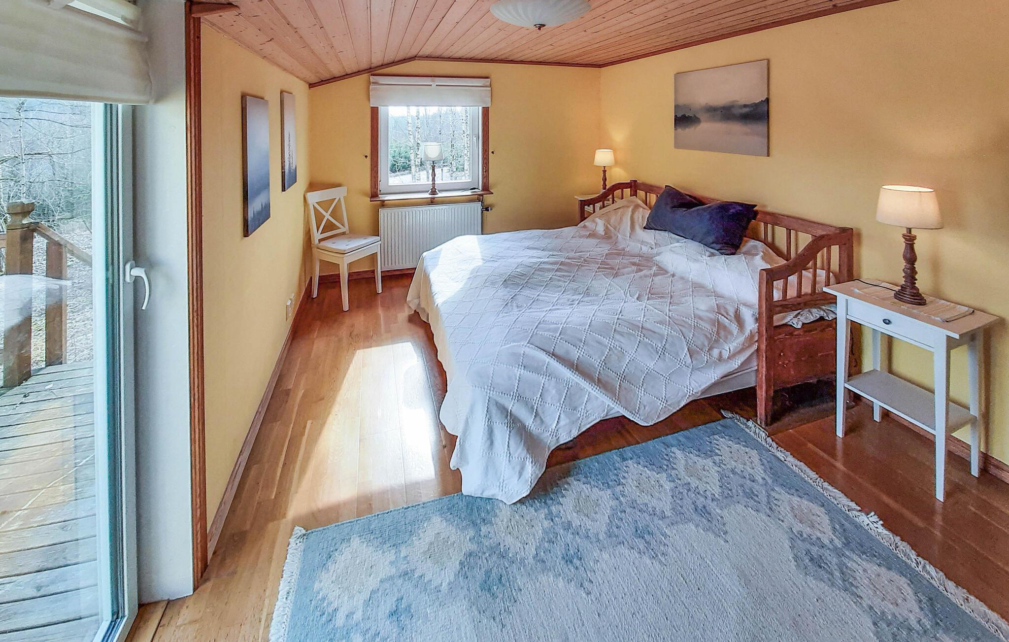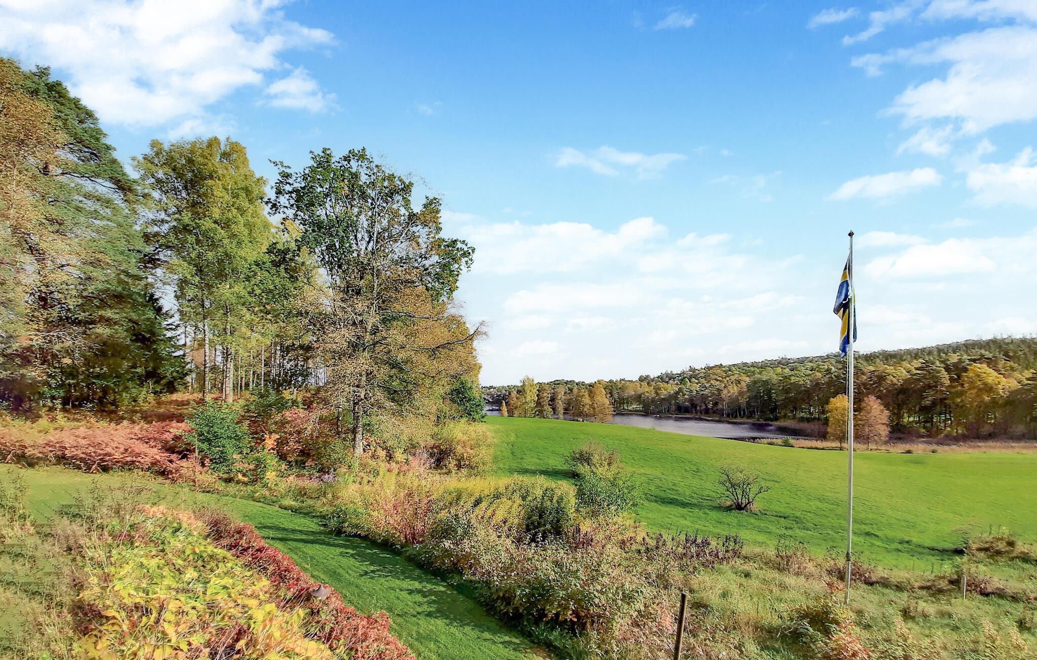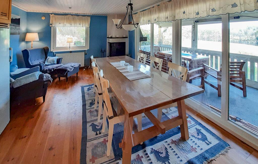 Bare noen få skritt fra innsjøen, ønsker dette vakre huset sine gjester velkommen i en idyllisk beliggenhet omgitt av naturidyll. Føl deg som hjemme sammen med dine kjære i de koselig innredede rommene. Nyt den fantastiske utsikten gjennom de store vinduene, som gjør det enkelt for deg å slappe av her fra dag én. Samle hele familien rundt peisen etter opplevelsene og legg planer for de neste dagene.