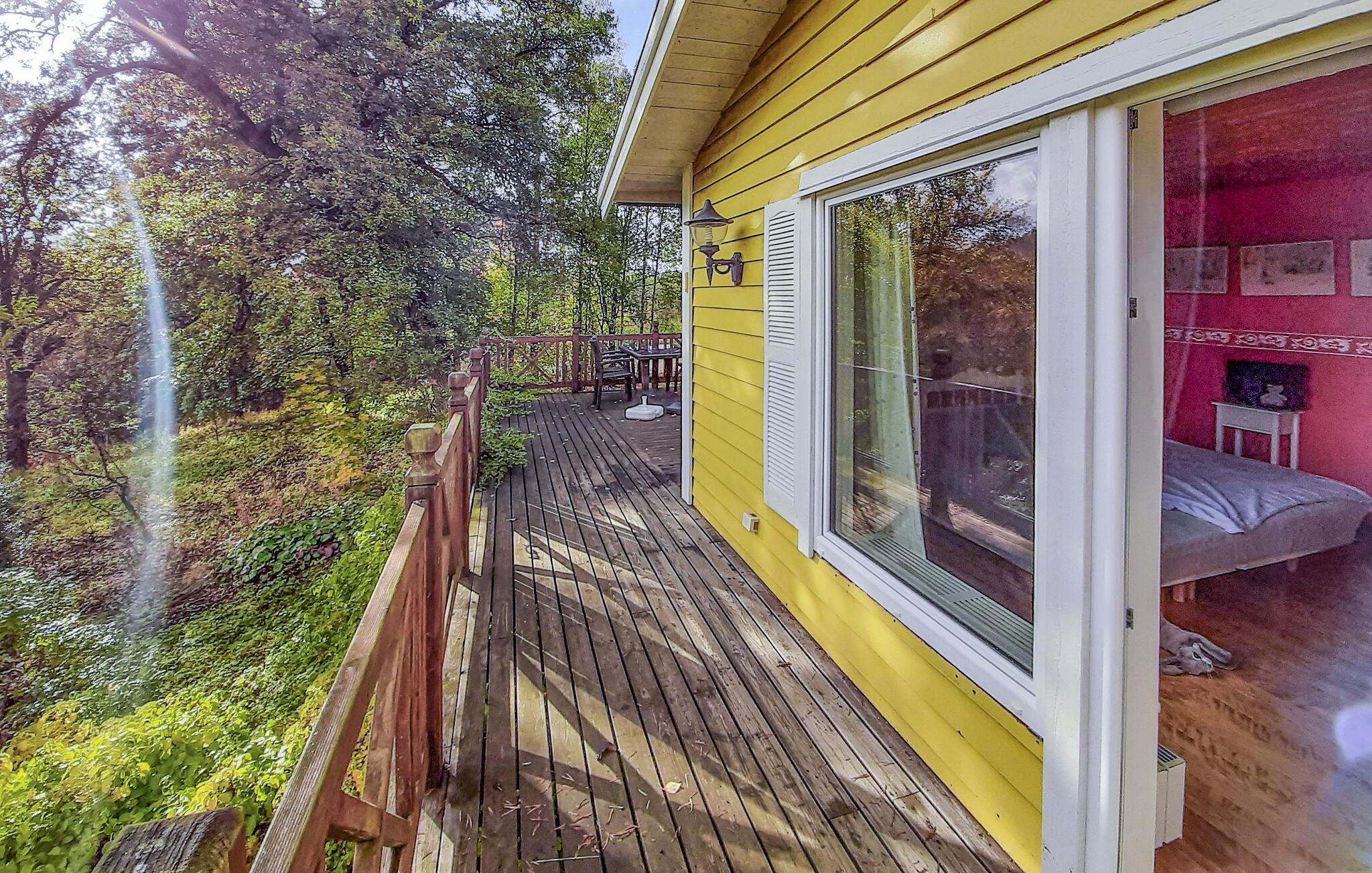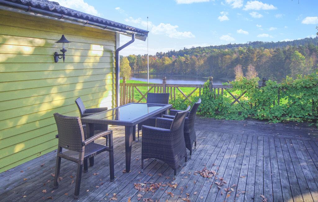 La deg også fortrylle av utsikten over innsjøen utenfor. Terrassen innbyr til herlige timer utendørs, hvor du kan nyte solen og de lange sommerkveldene.