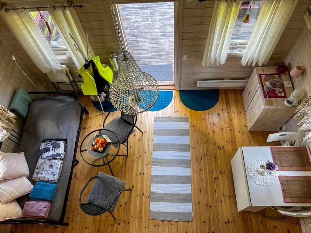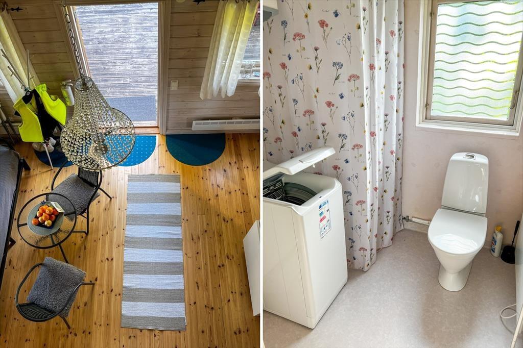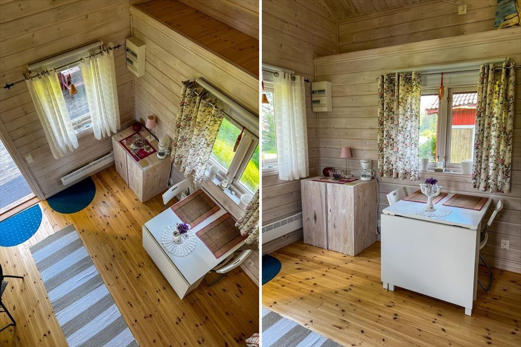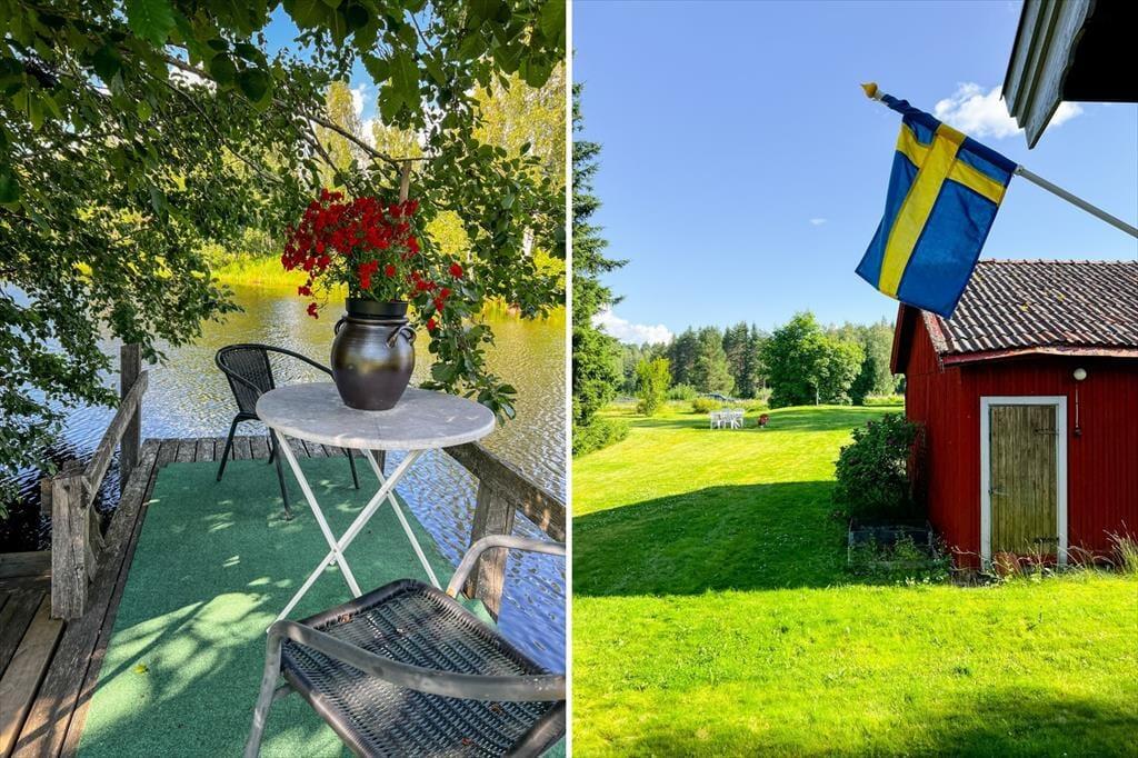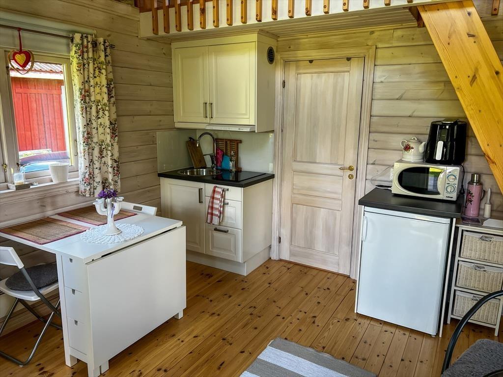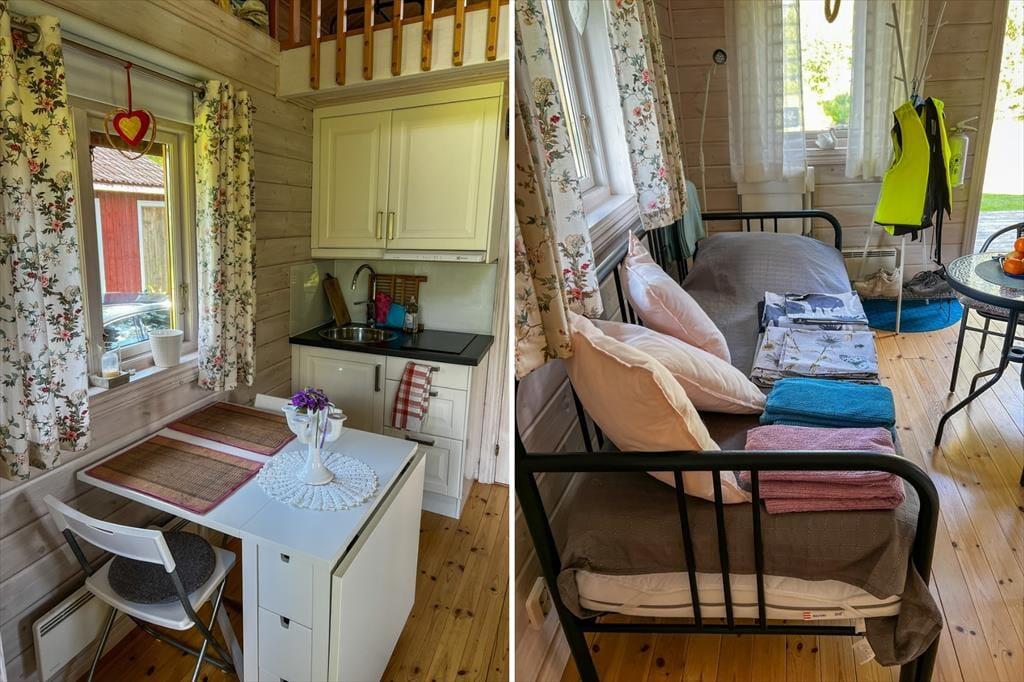 Das 2013 erbaute Ferienhaus hat zwar nur eine Wohnfläche von 35 m², aber dennoch viel zu bieten: Bis zu fünf Urlaubsgäste finden hier Platz. Die offen gestaltete Wohnküche ist mit einem Elektroherd mit zwei Platten, Mikrowelle, Airfryer, Kühlschrank mit Gefrierfach, Kaffeemaschine und Esstisch ausgestattet. Ein Kinderhochstuhl steht bei Bedarf zur Verfügung. Weiterhin finden sich hier zwei Sitzgelegenheiten und ein Bettsofa für zwei Personen. Im Schlafzimmer gibt es ein Einzelbett; auf dem Schlafboden ("Sovloft"), zu dem eine in Schweden häufig anzutreffende steile Treppe führt und man nur teilweise Stehhöhe hat, befinden sich zwei weitere Einzelbetten. Das Badezimmer ist mit Dusche, WC, Handwaschbecken und einer Waschmaschine ausgestattet. Vor dem Haus lädt eine Veranda mit Seeblick zum Verweilen ein. Das großzügige Grundstück bietet viel Platz zum Spielen und für Aktivitäten auf dem Wasser steht dir ein Kanadier für zwei Erwachsene und zwei Kinder zur Verfügung.