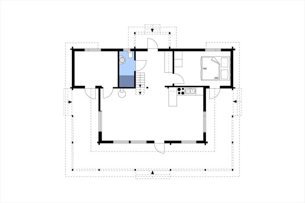 Das eineinhalbgeschossige, gegenüber dem Gästehaus etwas erhöht liegende Haupthaus, mit umlaufender überdachter und mit Gartenmöbeln ausgestatteter Veranda auf der Seeseite, wurde in Blockbohlenbauweise errichtet und hat eine Wohnfläche von etwa 90 m². Hier finden bis zu fünf Personen Platz. Ein offen gestalteter Wohnbereich mit integriertem Essplatz und Küche ist Mittelpunkt des Hauses Alles, was du zur Selbstversorgung benötigst, findest hier: Elektroherd mit Glaskeramikkochfeld und Backofen, Kühlschrank mit Gefrierfach sowie Geschirrspüler, Mikrowelle und Kaffeemaschine. Vom Esstisch aus blickt man auf den See. Der angrenzende Wohnbereich mit Kaminofen wurde mit einer gemütlichen Sitzgruppe möbliert und mit Flatscreen-TV und DVD-Player ausgestattet. Außerdem befinden sich im Erdgeschoß ein Schlafzimmer mit Doppelbett sowie ein Duschbad mit WC und Handwaschbecken. Vom Wohnbereich aus führt eine etwas steile, typisch schwedische Holztreppe zum Schlafboden, der mit einem weiteren Doppelbett und einem Einzelbett ausgestattet ist. Das nur wenige Meter vom See entfernt liegende Gästehaus mit 26 m² Wohnfläche bietet Platz für drei weitere Personen. Hier gibt es zwei kleine Schlafzimmer, eines davon mit einem Doppelbett, das andere mit einem Einzelbett möbliert. Außerdem hat das Haus eine kleine, mit einem Holzofen beheizbare Wohnküche, ausgestattet mit Elektroherd mit Glaskeramikkochfeld und Backofen, Kühlschrank, sowie Mikrowelle, Toaster und einem Esstisch mit vier Stühlen. Ein besonderes Highlight des Urlaubs in diesen Häusern ist eine mit Holz beheizbare finnische Sauna Kota direkt am See. Ein Ruderboot sowie ein Kanu stehen den Gästen darüber hinaus ebenfalls zur Verfügung.
