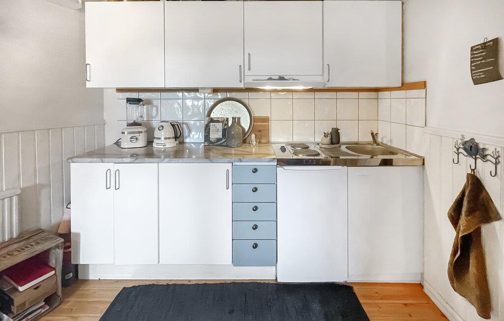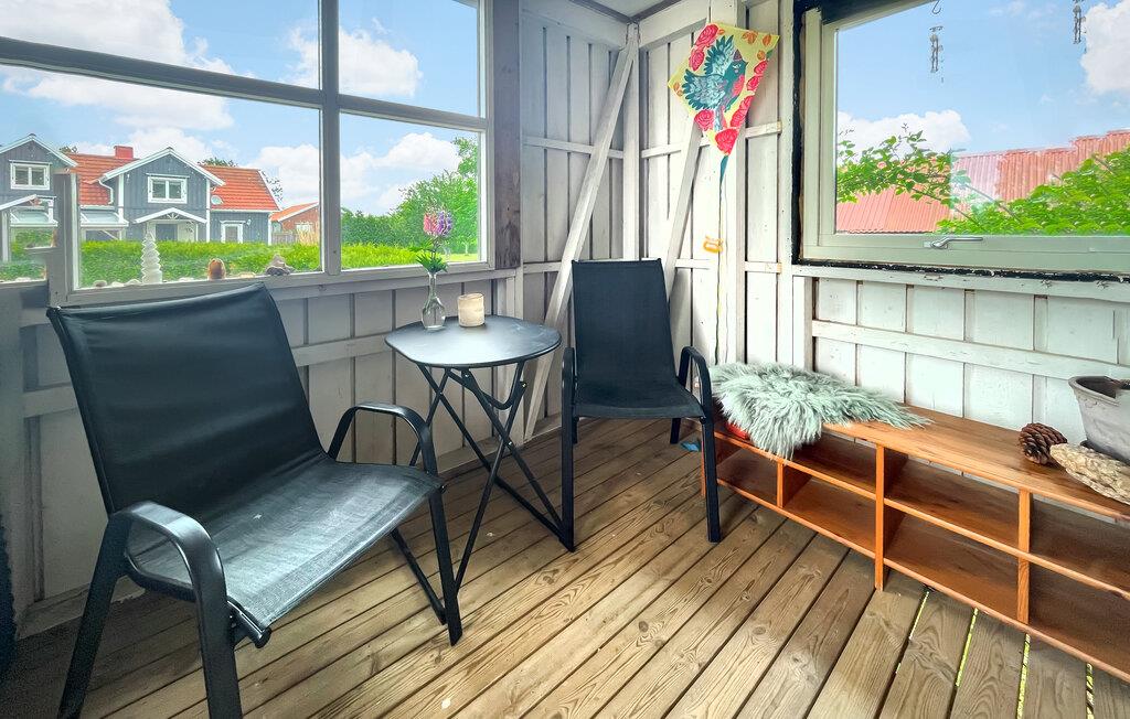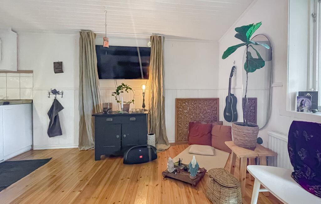 Dette feriestedet er ideelt for par som er ute etter et fredelig og vakkert sted for ferien i Sverige. Slapp av og nyt samværet i dette koselige tilfluktsstedet. Leiligheten imponerer med sin koselige innredning. Den rustikke treverandaen med sittemøbler innbyr til avslappende timer med utsikt over området rundt. Interiøret er kjærlig innredet og kombinerer moderne bekvemmeligheter med en rustikk, skandinavisk sjarm. Her finner du også en koselig sittegruppe som innbyr til å slappe av med en god bok eller et glass vin. Kjøkkenet er funksjonelt innredet. Frokosten kan du nyte i den koselige atmosfæren i stuen.