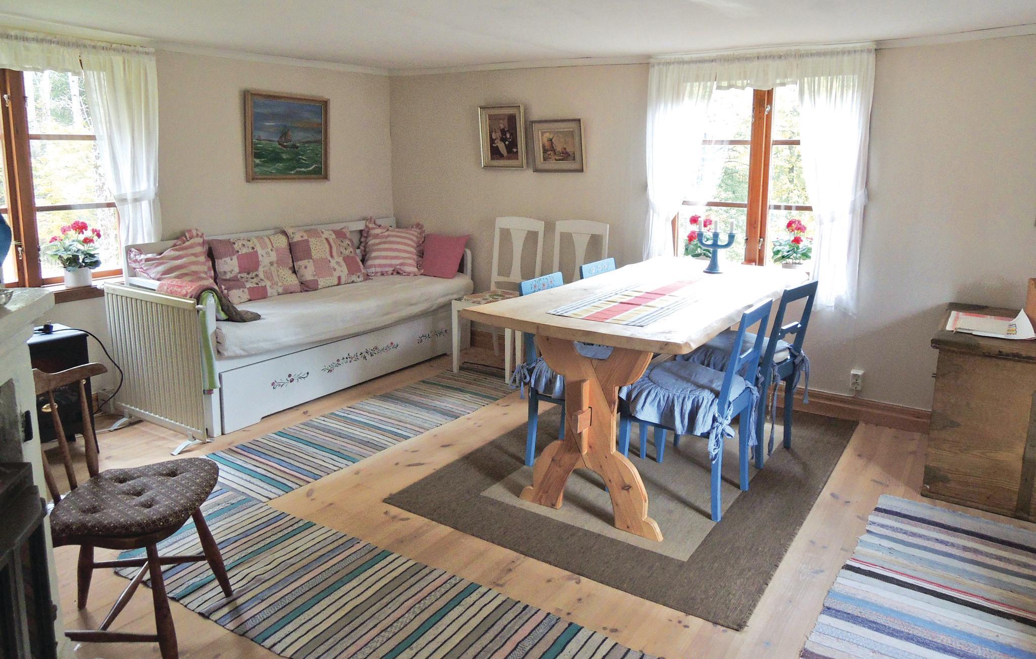 Vakker hytte fra 1800-tallet i Småland, i et område med svært interessant flora og fauna. Egen badeplass med brygge og grillplass ved sjøen 60 m unna. Du har en stor privat brygge på din egen innsjø eiendom. Vakre turstier. Besøk Åsens (20 km) og Skurugata og Eksjö (30 km). Du har 100 km til opplevelsesparken Astrid Lindgrens Värld og tannpirkermuseet ligger 30 km unna. For shopping kjører du 36 km til Jönköping, forbi Huskvarna hvor du kan se 300 års historie i Husqvarna Factory Museum. Her finnes en imponerende samling av symaskiner, sykler, mopeder, motorsykler, gressklippere og motorsager. Noen hundre meter unna ligger Smedbyn, med røtter tilbake til 1700-tallet. Her bodde bøssemakerne med sine familier. Fra 1. august til 15. september er det fiskeforbud i innsjøen på grunn av krepsefiske. Gjedde, gjedde og andre arter kan fanges i innsjøen. Vær oppmerksom på at en bratt trapp fører til øverste etasje.