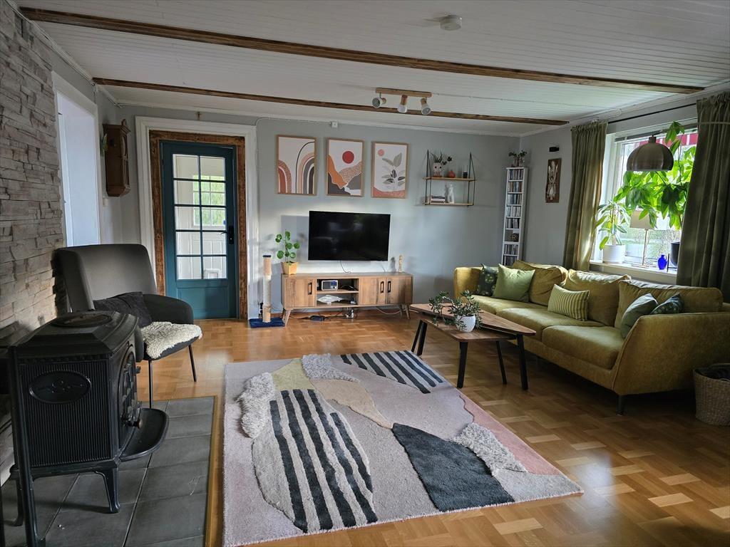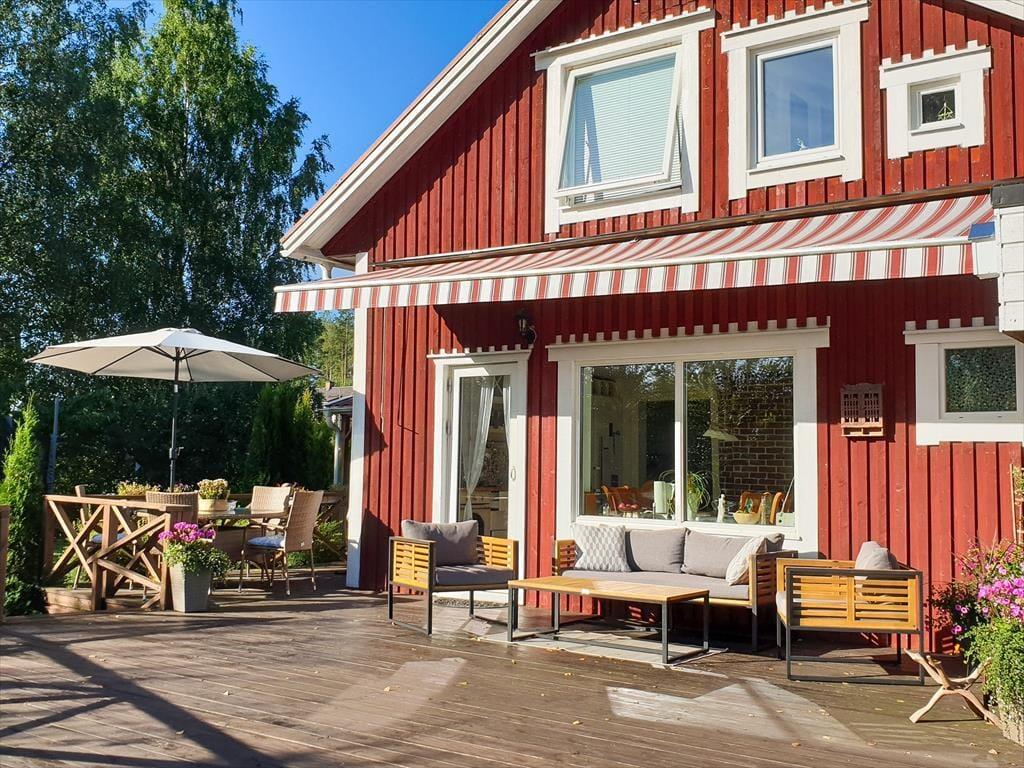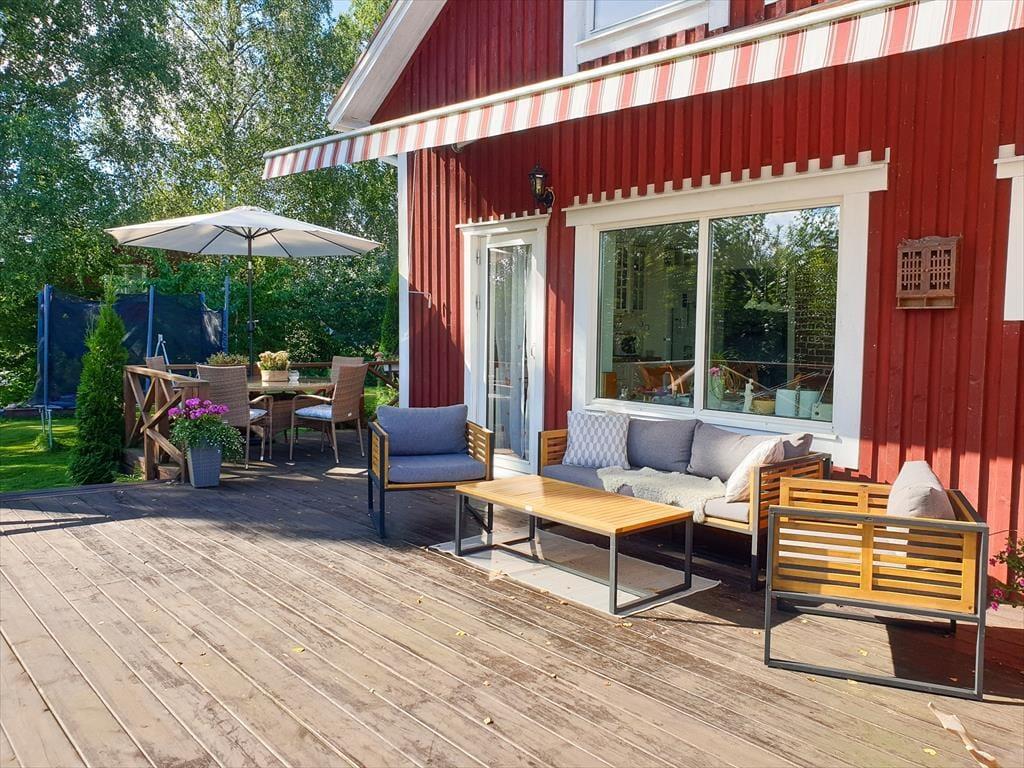 Draußen kannst du auf der Veranda mit Blick auf den Klarälven entspannen, im Garten grillen oder mit Kindern auf der Spiel- und Liegewiese den Tag genießen. Gartenmöbel, ein Sandkasten und ein eigener Parkplatz direkt am Haus sind ebenfalls vorhanden.