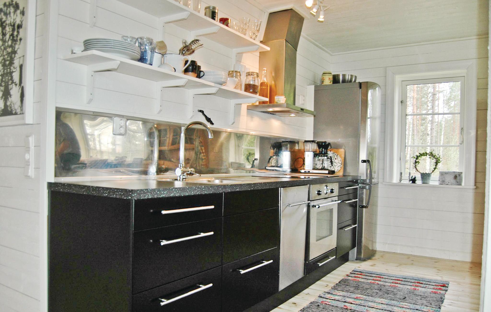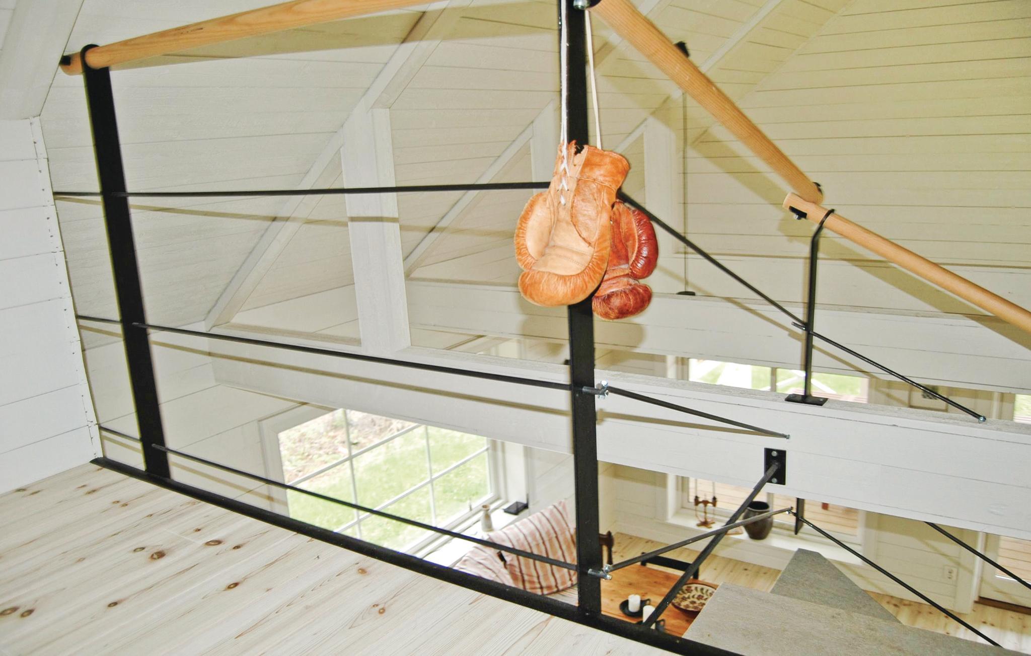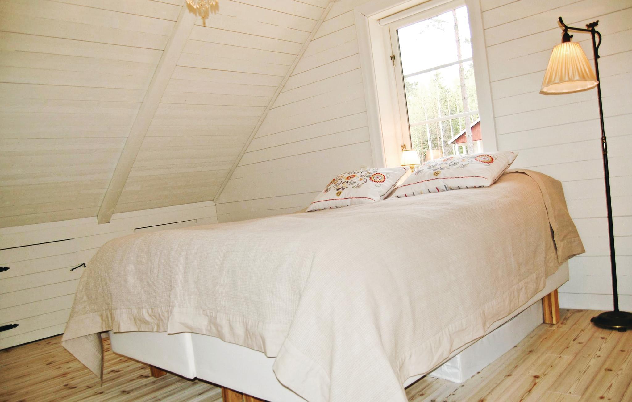 Dette feriehuset har en vakker beliggenhet. Det har panoramautsikt over Samstorpstjärnet, hvor du kan fange fisken din til middag. Selvfølgelig har huset også en båt. Skogen rundt huset innbyr til avslappende sopp- og bærsafari. Du vil også møte skogens konge, elgen. Mange stier krysser omgivelsene, du kan ta en avslappet spasertur her. Åpen planløsning og interessant arkitektur med lyse rom. Soverommet oppe er åpent og lyst og har gode senger. Velutstyrt kjøkken.