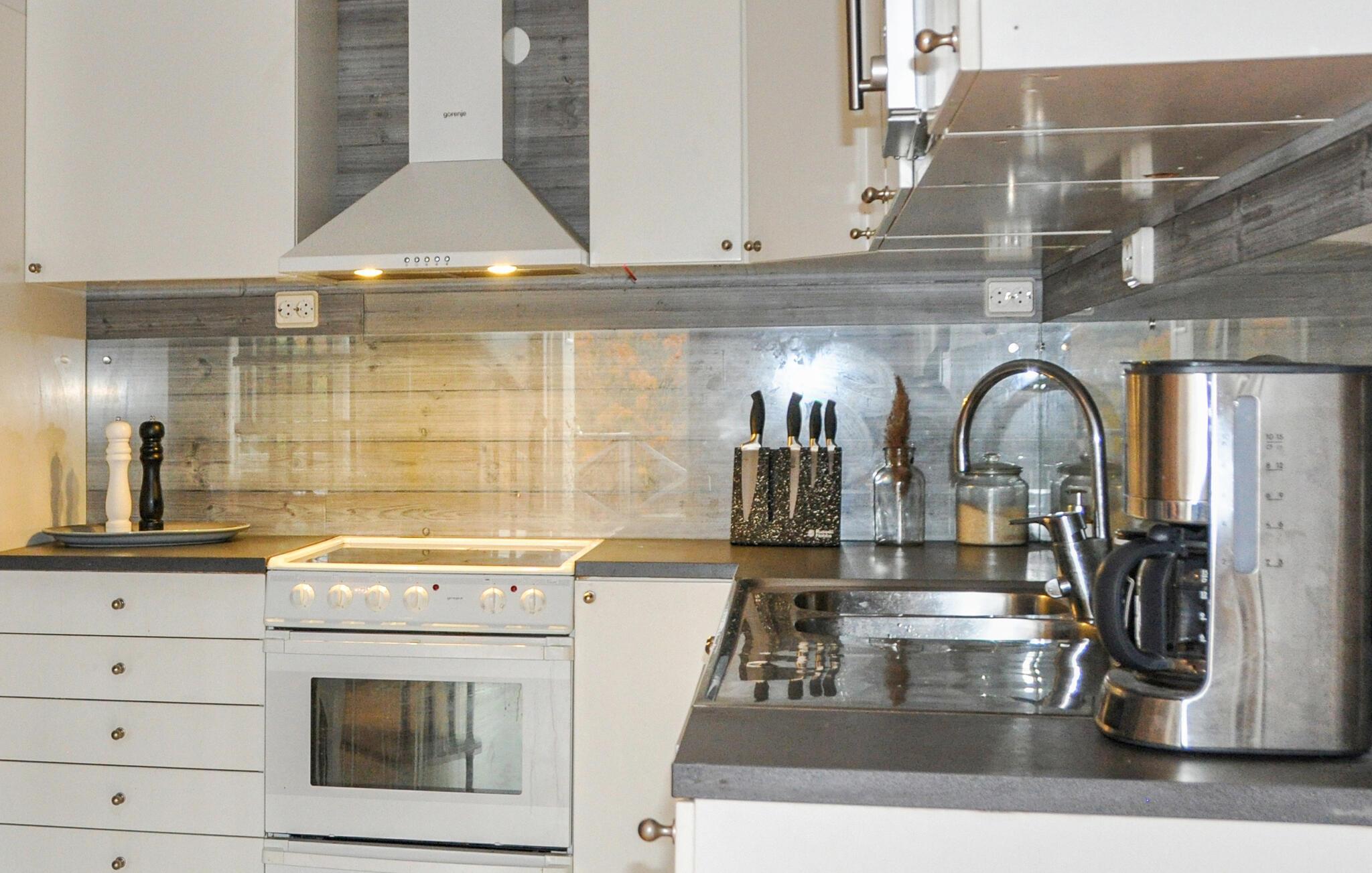 Dette moderne feriehuset gir deg god plass til å nyte en avslappende ferie med venner eller familie, omgitt av attraktive fritidsaktiviteter på landsbygda. Lag deilige retter og sett deg godt til rette i den innbydende stuen for en morsom spillkveld.