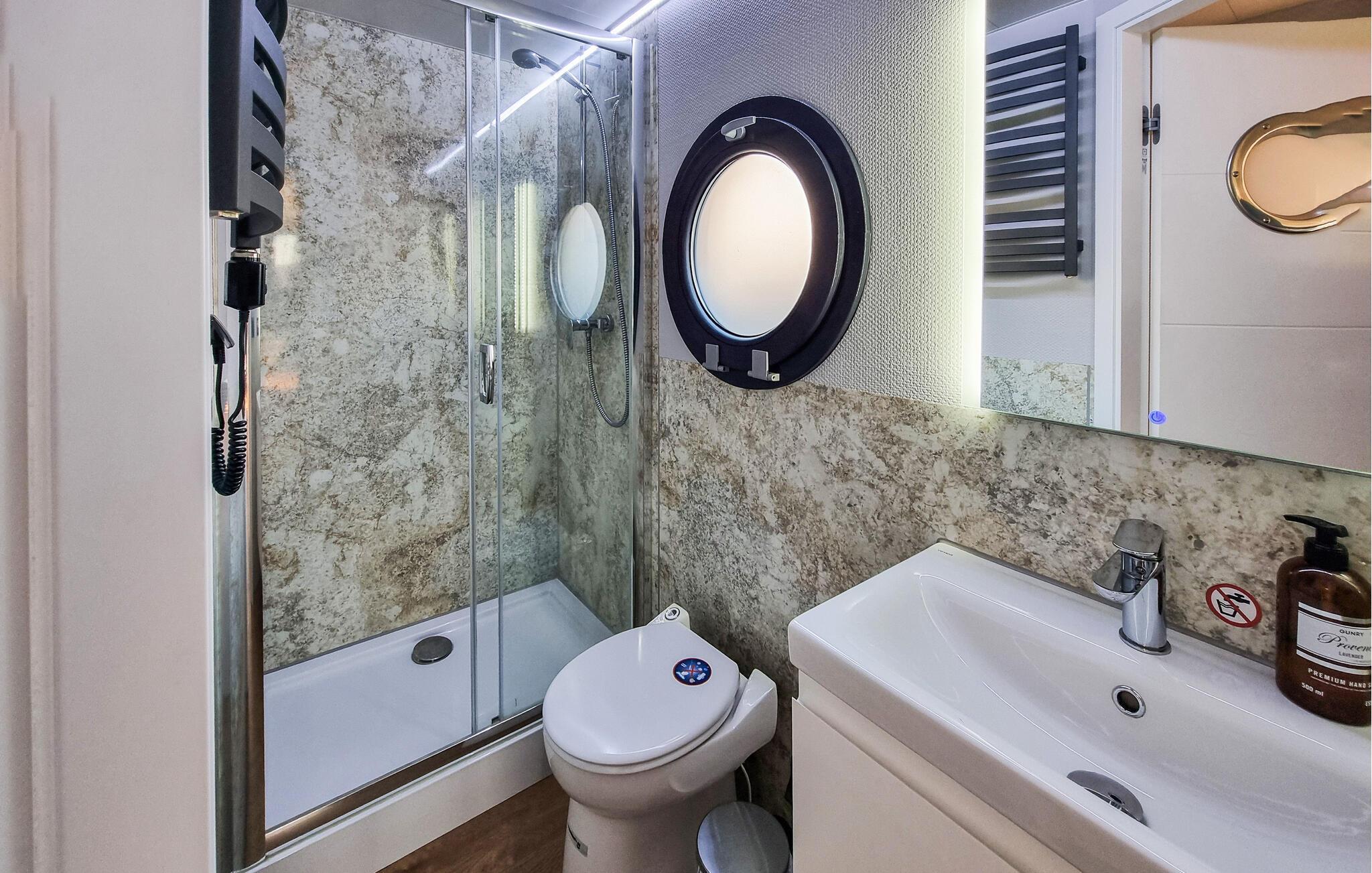 Åpne døren til terrassen om morgenen og la havnestemningen strømme inn. Sitt ute, spis frokost i fred og ro og nyt husbåtens minimale gynging. Hvis du lengter etter koselig varme, er avslappende timer i den felles badstuen akkurat det rette for deg.