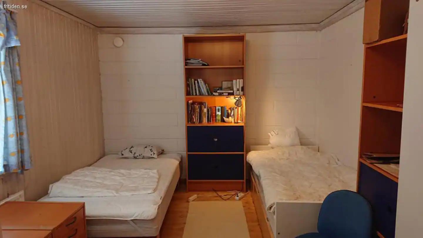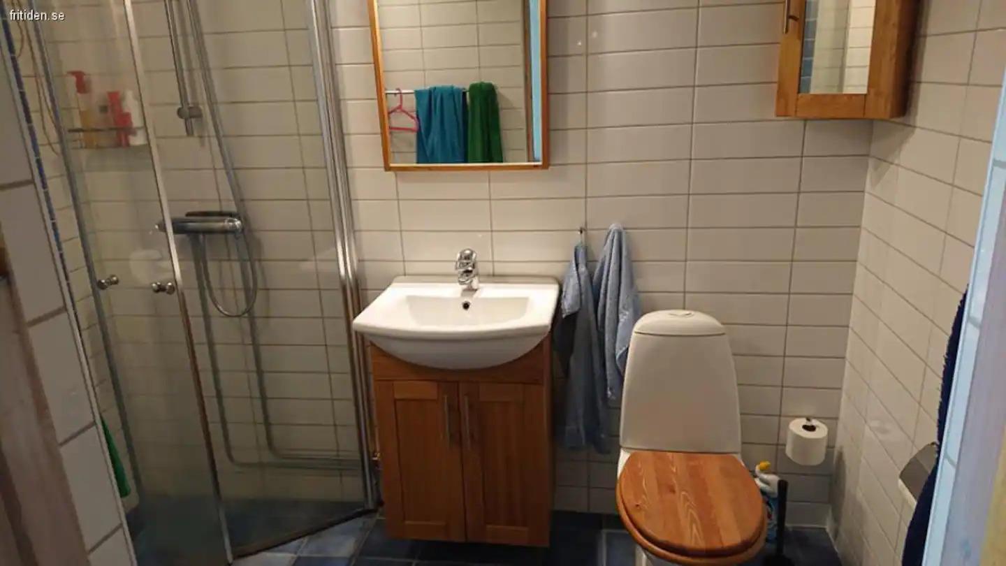 The bedroom here has a double bed and a bathroom with shower. Modern TVs with Chromecast and HDMI. There is also access to the entire range of Viasat, as well as a DVD player.