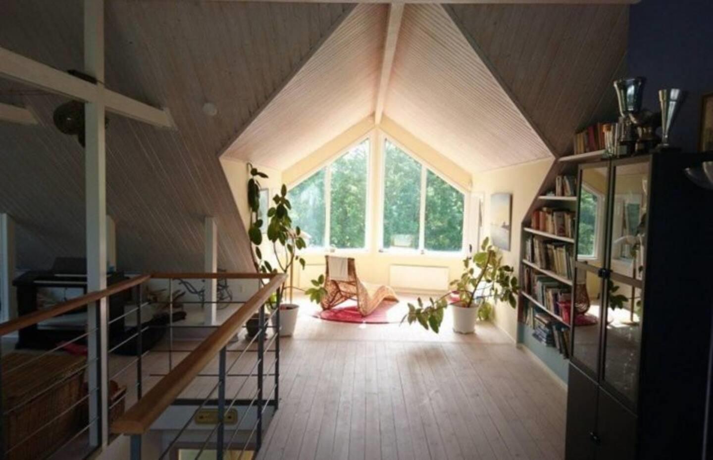 On the second floor there is there is a large and bright living room furnished with a TV and sofa. There is a music section with various instruments. The owner does not mind you using them - under adult supervision.