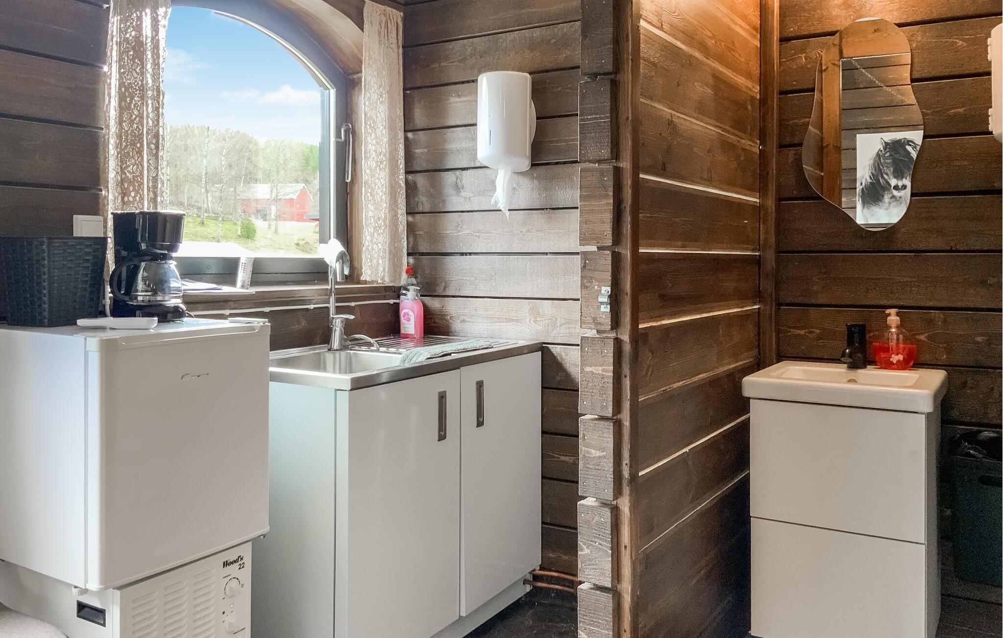 Dette koselige feriehuset venter på sine gjester på eierens eiendom. 2 personer kan tilbringe en fantastisk ferie her, et kjæledyr kan også komme med på ferie. Soveplassene er i stuen. Hytta er smakfullt innredet og et godt utgangspunkt for vakre utflukter.