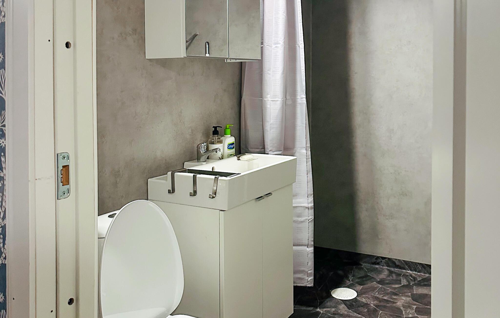 - WC med varmt og kaldt vann, Dusj