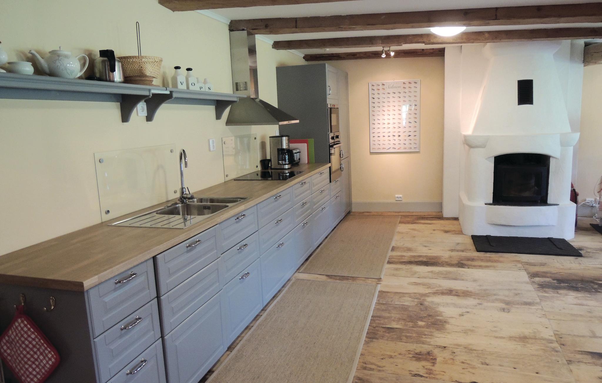 Gammelt kornmagasin fra 1700-tallet i et landskap med herregårder. Kornmagasinet ble renovert i 2014 og forvandlet til et innbydende feriehus. Huset er renovert og vakkert innredet til en meget god standard. Kjøkkenet er fullt utstyrt og kombinert med stuen. Induksjonskomfyr og oppvaskmaskin. Det er plass til 10 personer ved det store bordet. Det er sofaarrangement og TV foran komfyren. Rommet har et stort vindu med utsikt over innsjøen Bunn. Rett under huset er det en brygge med gode bade- og fiskemuligheter. Der kan du leie motor til båten din, samt en ekstra robåt. Der kan du også kjøpe fiskekort. Du er velkommen til å leie den renoverte badstuen ved innsjøen ved å bestille gjennom eieren.