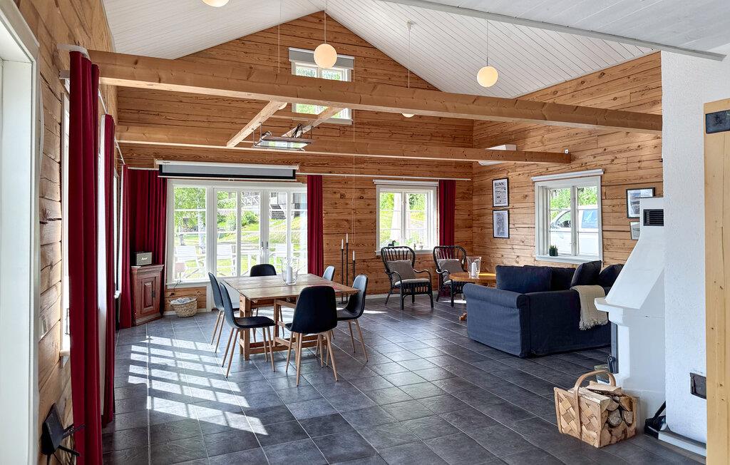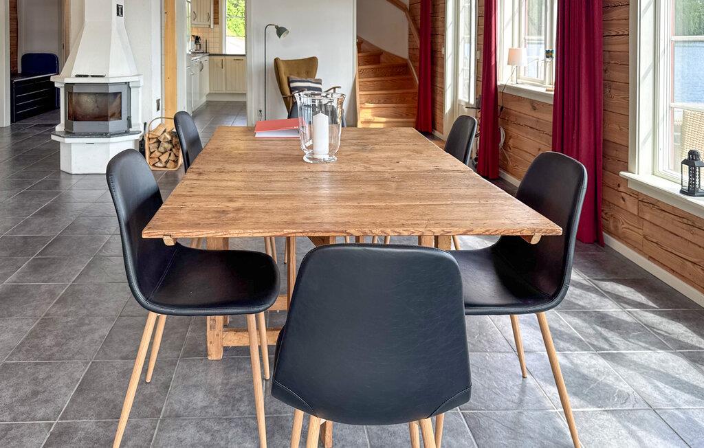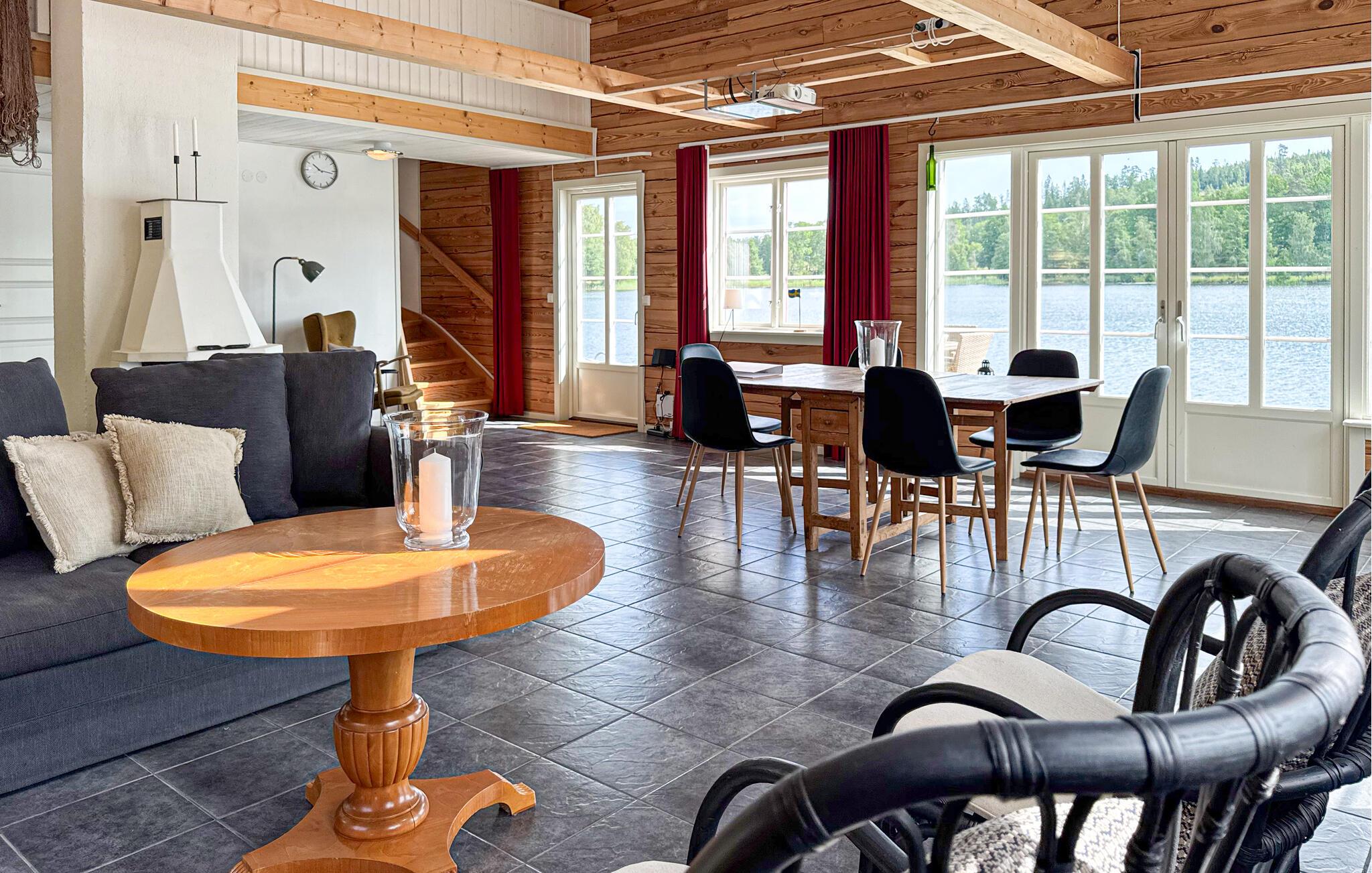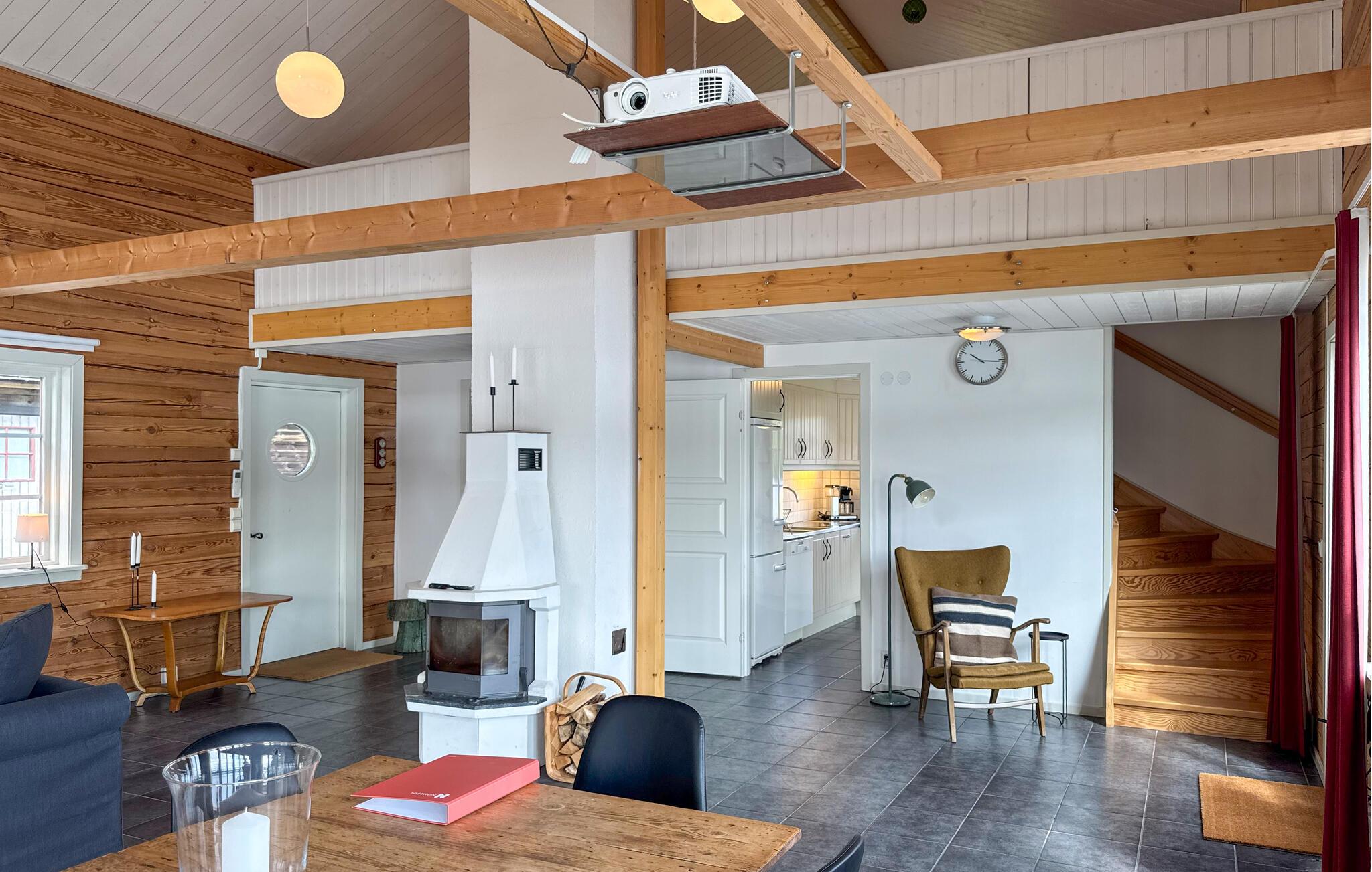 Dette romslige og koselige feriehuset ønsker deg velkommen med en vellykket blanding av rustikk sjarm og moderne komfort. Tenn opp i den norske komfyren og gled deg til koselige matlagingskvelder på det store kjøkkenet og harmoniske måltider med utsikt over vannet. Slå av en prat under koselige spillkvelder eller nyt stimulerende samtaler over et glass vin i sofaen.
