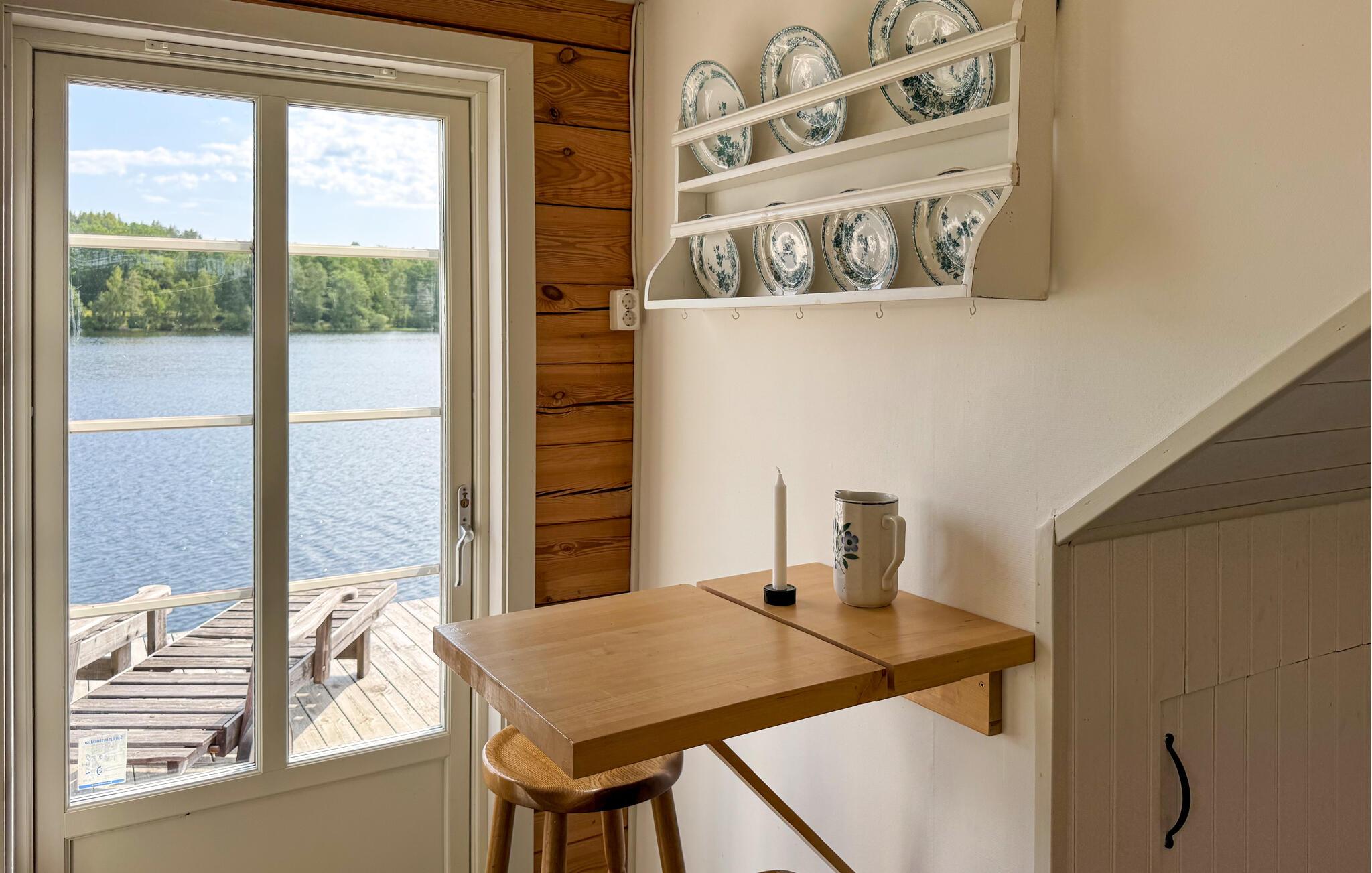 Nyt en magisk utsikt over innsjøen under en idyllisk ferie i dette koselige feriehuset.