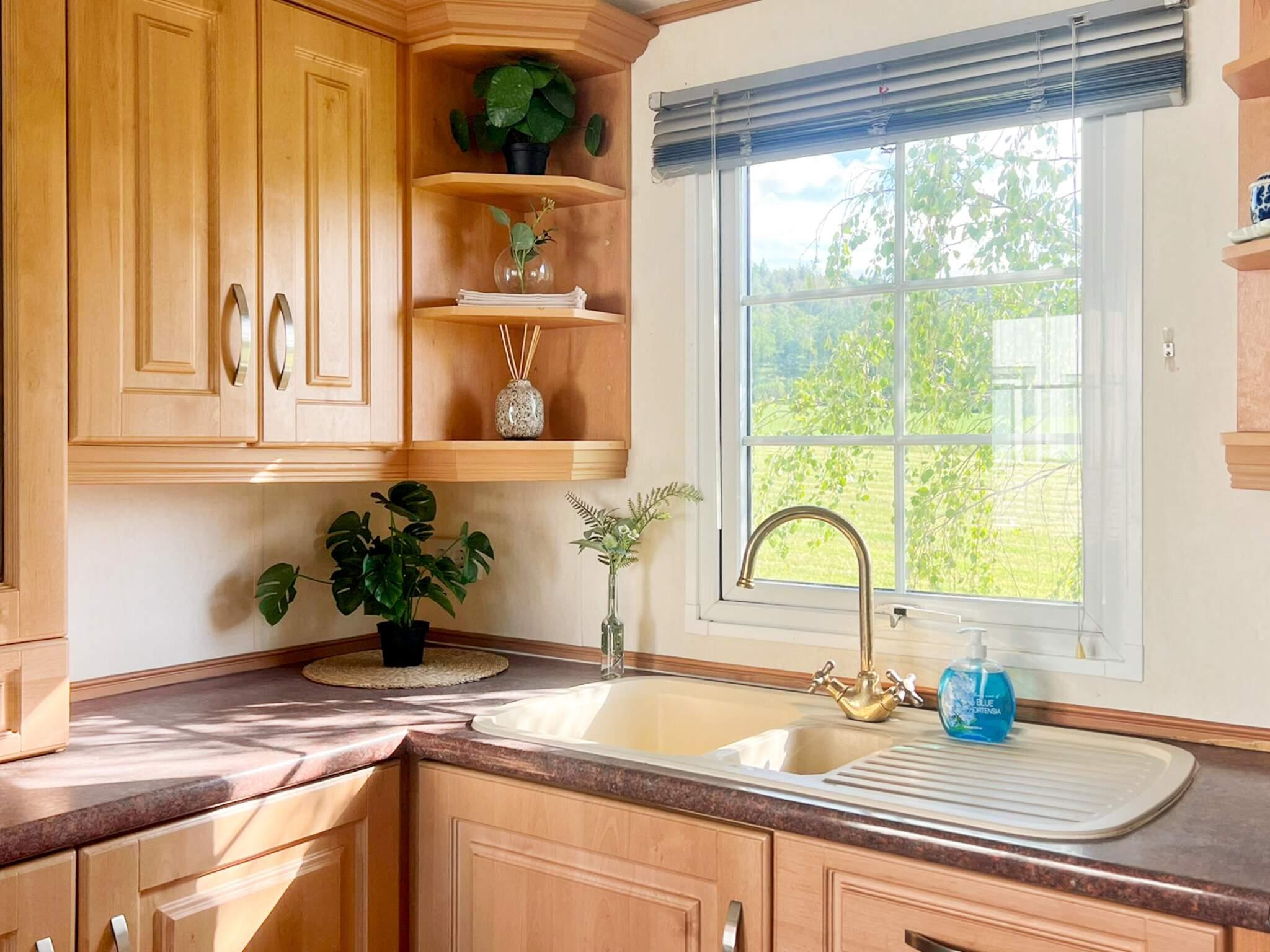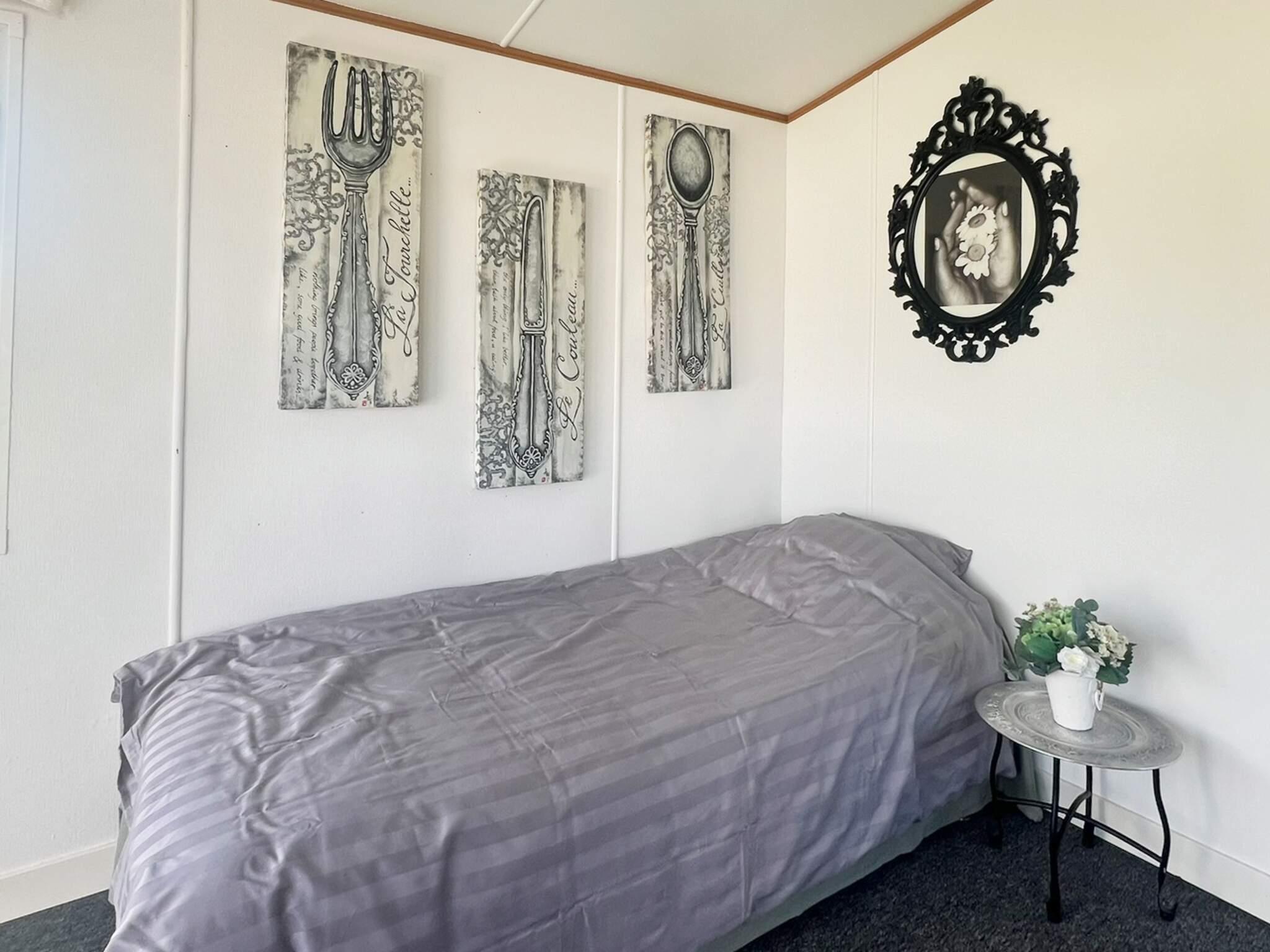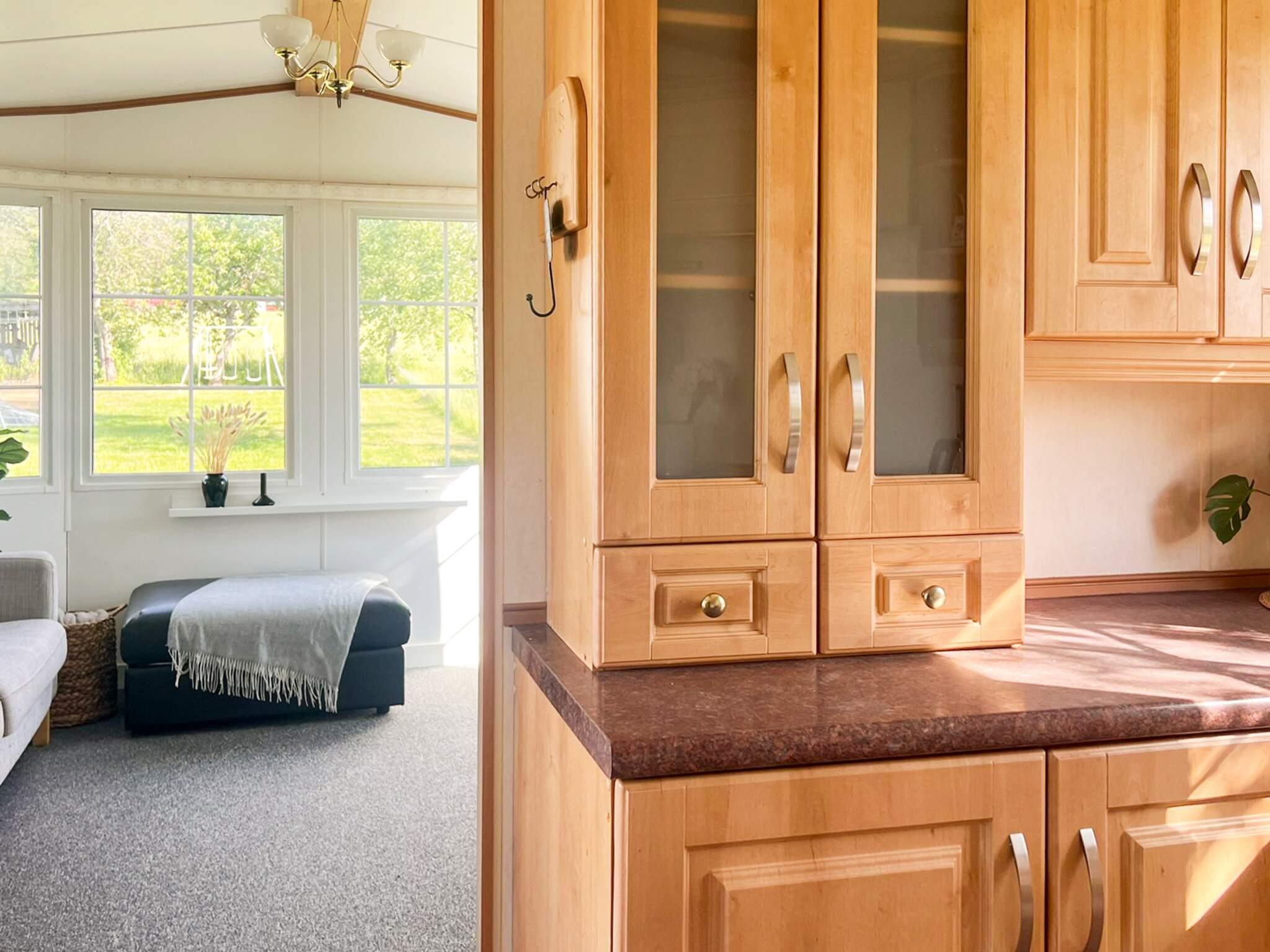 Boendet är en ljus och fräsch villavagn, nyligen upprustad av ägaren. Den har ett rymligt kök med allt man behöver, som spis, Micro, diskmaskin mm. Köket ligger i anslutning till matplatsen och leder vidare in i vardagsrummet som har en härlig utsikt över landskapet. I vardagsrummet finns även där en 90 säng som kan användas som sovplats om så önskas. Det finns två små sovrum, med en 120 säng i det ena och en 90 säng i det andra. Man delar tomt med ägaren men man har sin egen del som är avskärmad.