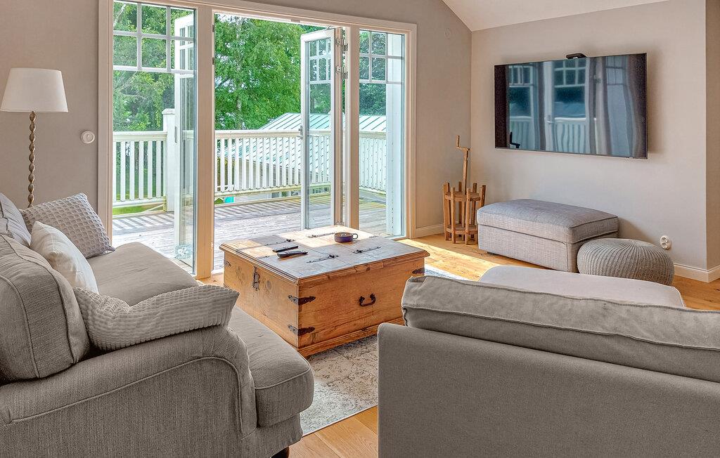 Hele familien vil ha gode minner fra ferien i denne hytta ved sjøen.