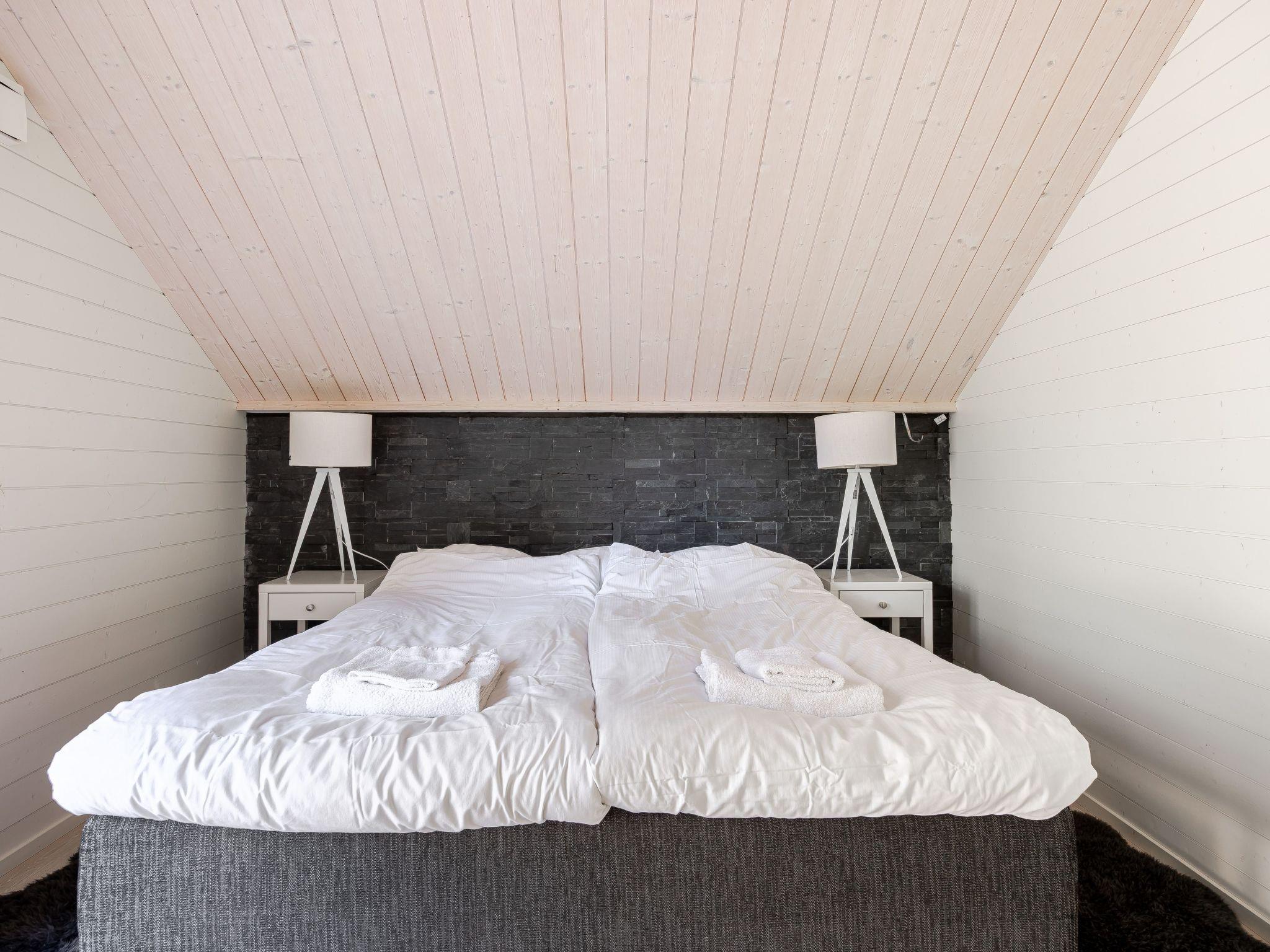"Lagunen Premium Chalet", 4-room house 90 m2. Spacious and bright, very modern and tasteful furnishings: open living/dining room with Scandinavian wood stove and TV. 2 double bedrooms, each room with 1 double bed (180 cm, length 200 cm). Exit to the terrace. Open kitchen (oven, dishwasher, 4 ceramic glass hob hotplates, toaster, kettle, microwave, freezer). Shower/WC. Electric heating. Upper floor: (steep stair) open with 1 sofabed (160 cm, length 200 cm). Parquet floors. Large terrace 60 m2. Terrace furniture, barbecue. Very beautiful panoramic view of the forest. Facilities: washing machine. Internet (WiFi). Please note: non-smoking house. Maximum 1 pet/ dog allowed. Smoke alarm, fire extinguisher.