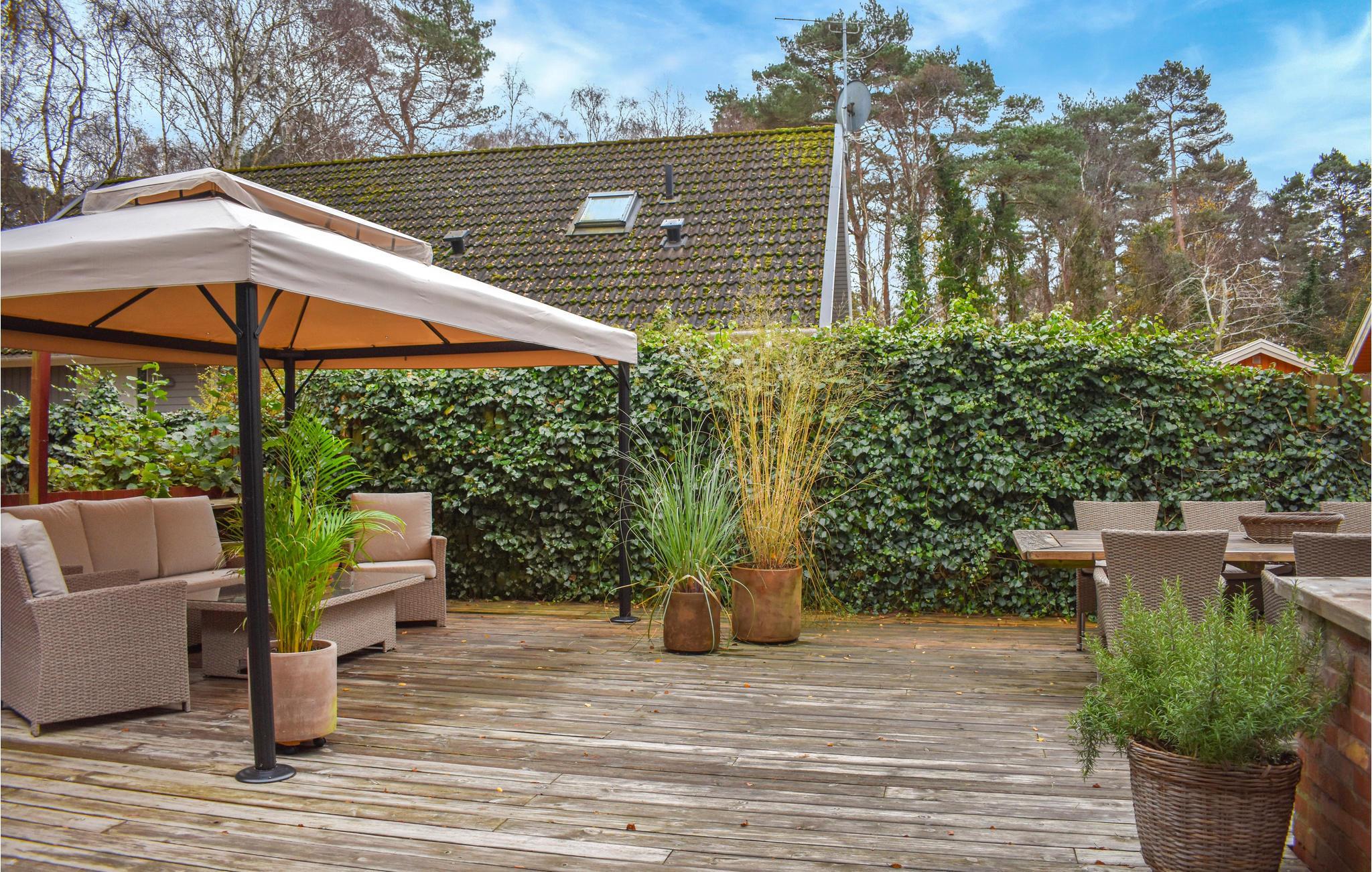 Det romslige feriehuset er ideelt for familier som leter etter et hus med karakter og god komfort. Blandingen av fargerike tapeter, en overflod av små dekorative detaljer, antikke møbler og moderne elementer gir huset et varmt uttrykk, og når du kommer inn, føler du deg straks som hjemme. Her kan man virkelig nyte tiden sammen, enten det er over et godt måltid ved spisebordet, når man baker sammen eller spiller brettspill i sofakroken. En vindeltrapp fører opp til første etasje og dermed også til galleriet, noe som gir huset en romslig følelse og gjør det lettere å kommunisere. Tilbring koselige timer på den store terrassen med en deilig grillmat eller en kjølig forfriskning i det overbygde loungeområdet.