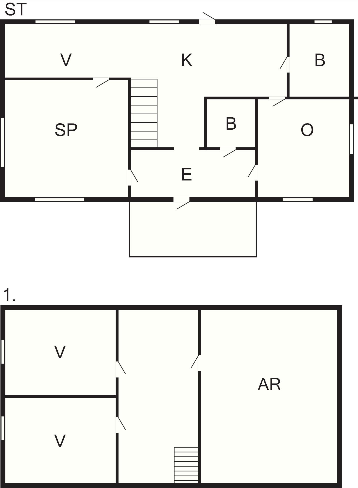 Huset har två stora rum på nedervåningen för umgänge, ett vardagsrum och ett matrum. Här finns även kök, ett sovrum samt toalett och separat duschrum. Tvättmaskin finns också. På övervåningen finns ett stort aktivitetsrum med olika spel samt två sovrum. Stugan är beräknad för fem personer, men då en säng är 140 cm bred kan man även bo en extra person om man önskar.