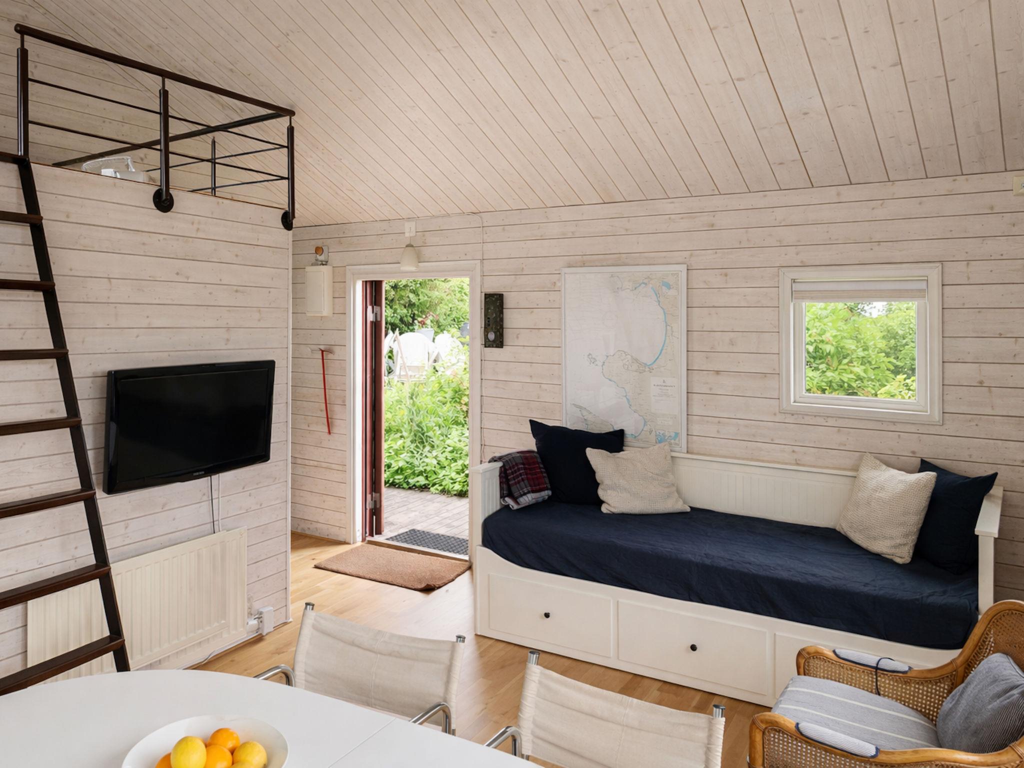"Ringenäs", 1-room house 50 m2. Open living/sleeping room with 1 sofabed (140 cm), dining table and TV. Exit to the garden, to the terrace. Sleeping alcove with sloping ceilings with 1 bed (160 cm). Wooden floors. Terrace furniture. Very beautiful view of the sea and the garden. Facilities: Internet (WiFi). Please note: non-smoking house.