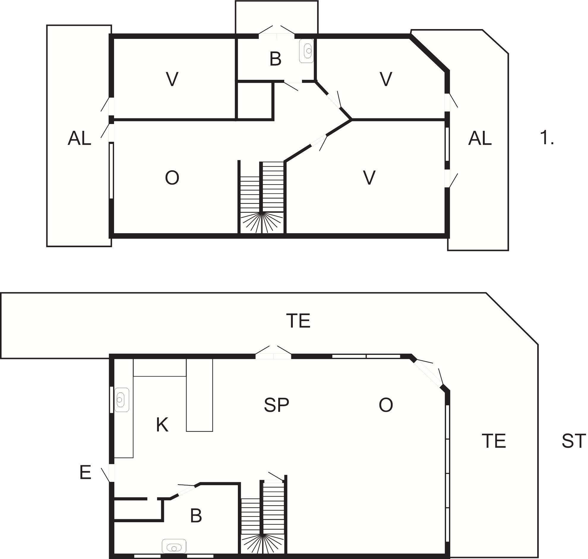 Via entrén kommer ni in i en välkomnande öppen planlösning med köksdel med induktionshäll, ugn, kyl/frys, mikro, kaffebryggare och diskmaskin, matsalsmöbel, vardagsrumsdel med stor skön soffgrupp och en värmande braskamin samt ett WC med tvättmaskin. Från vardagsrummet finns flera altandörrar ut på stugans altanområde varav en del är under tak. Härliga platser för solning och för mysiga grillstunder där ni diskuterar dagens äventyr eller planerar för nya. En trappa leder upp till stugans andra våning med två sovrum, ett med en dubbelsäng och ett med en våningssäng, ett litet vardagsrum perfekt för en stunds vila eller en god bok samt ett badrum med dusch. Från vardagsrum, sovrum samt badrum leder dörrar ut på balkonger där ni kan njuta av de fina omgivningarna med alla båtarna vid bryggor och sjöbodar eller de som passerar revy i sundet utanför.