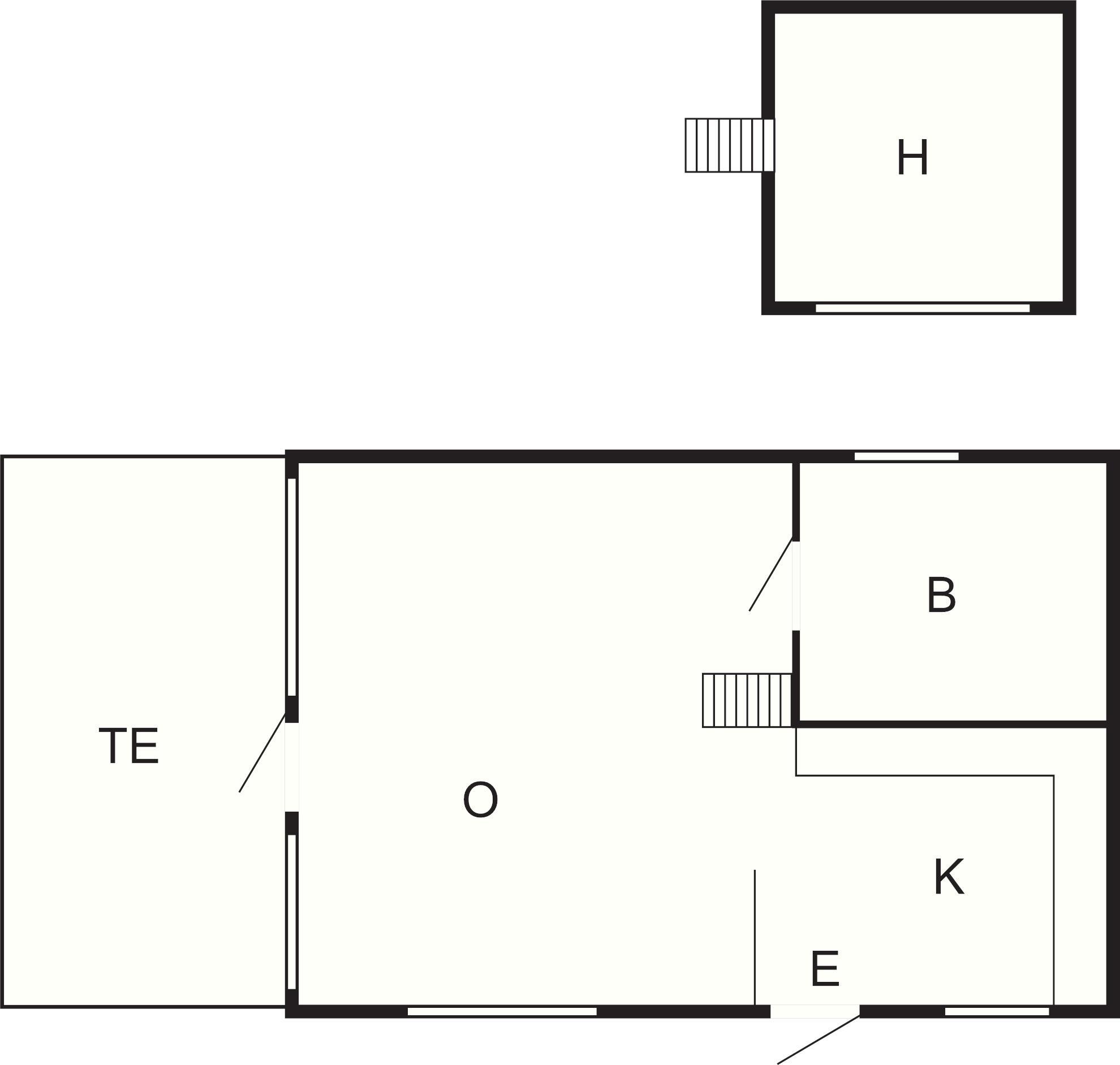 Kjøkken: El-komfyr, kjøl/frys, mikro, kaffetrakter