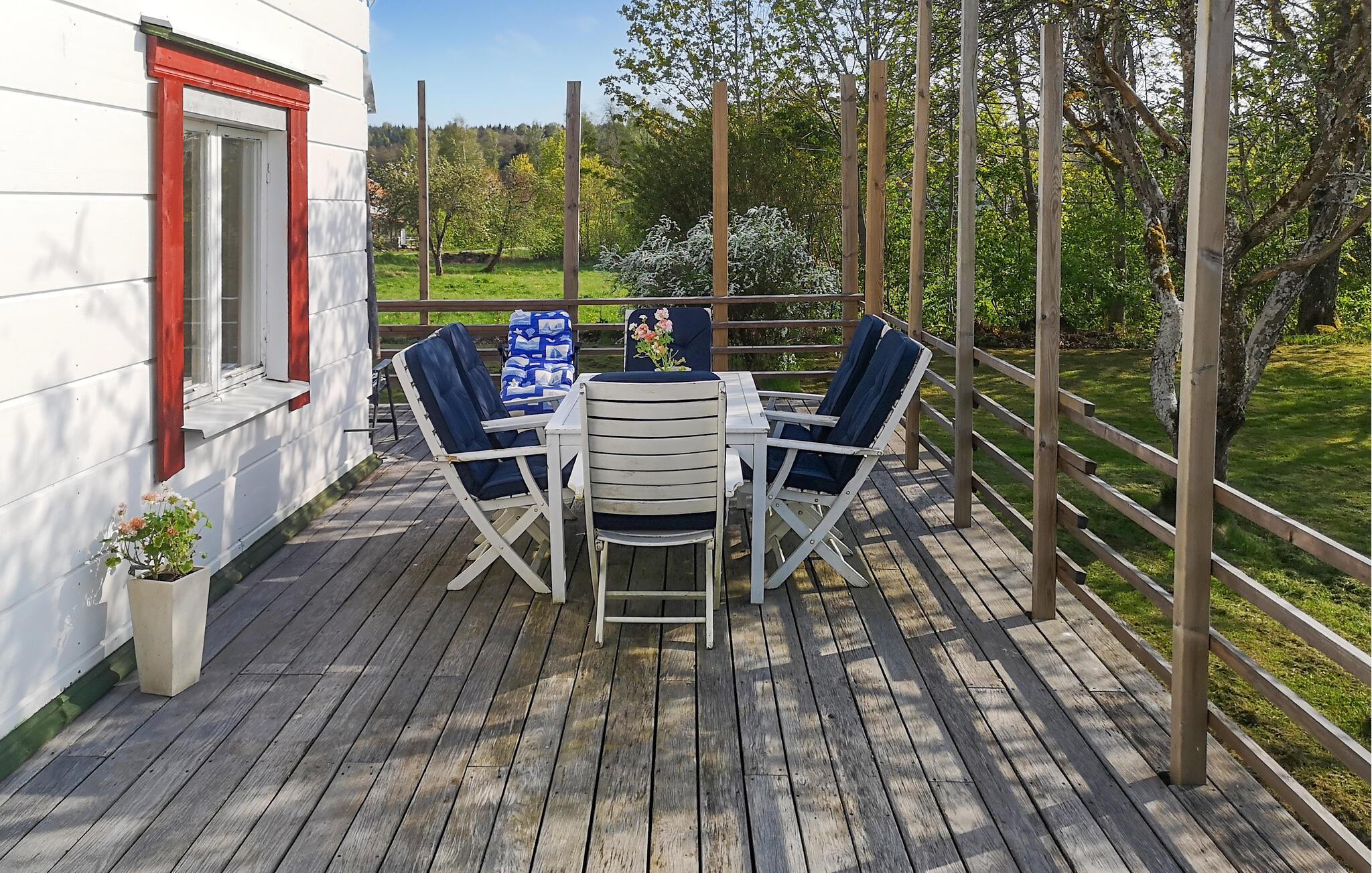 Dette er de perfekte omgivelsene for en flott fiskeferie, da innsjøene er fulle av fisk. Du kan selvfølgelig også ta deg en svømmetur. Besøk nærliggende Ullared for en unik shoppingopplevelse, eller utforsk de vakre innsjøene og turstiene i området. Utforsk byen Kinna, som ligger omtrent 14 kilometer fra huset. Hvis du vil, kan du kjøre til Göteborg.