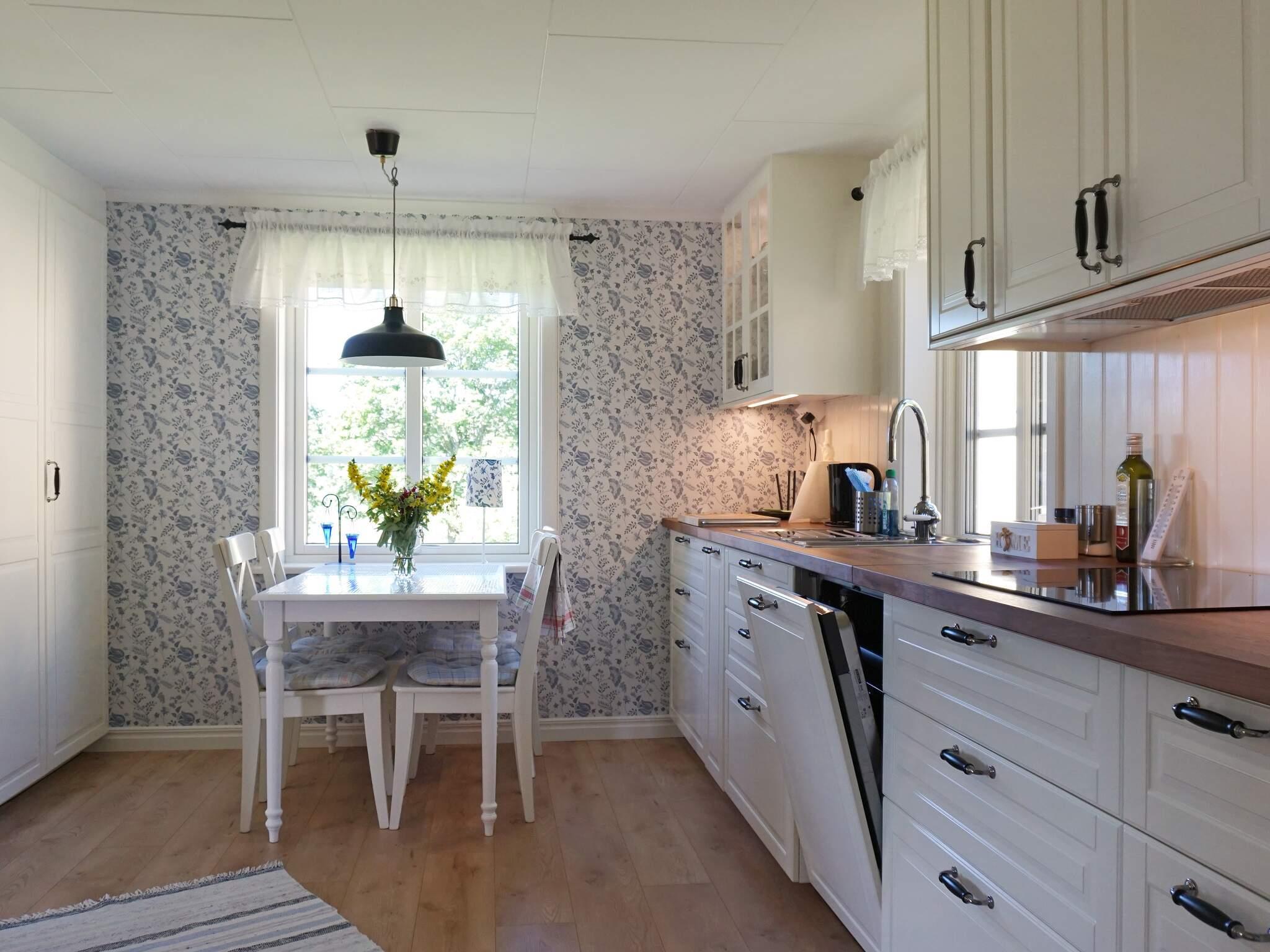 Kjøkken: El-komfyr, ovn, kjøl/frys, mikro, kjøkkenvifte, kaffetrakter, oppvaskmask., vann fra brønn