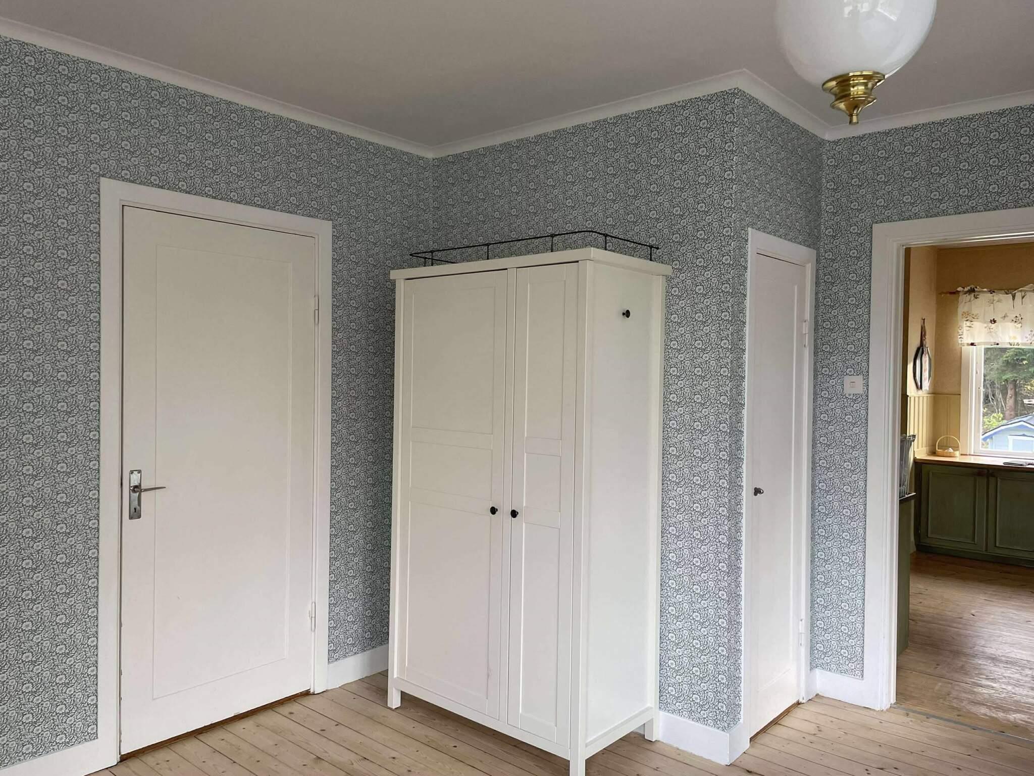 På övervåningen hittar ni ett fullt utrustat och rymligt kök, ett vardagsrum med kamin och bäddsoffa för två personer, samt ett sovrum med dubbelsäng. Här finns också en separat WC, vilket ger extra bekvämlighet under er vistelse.