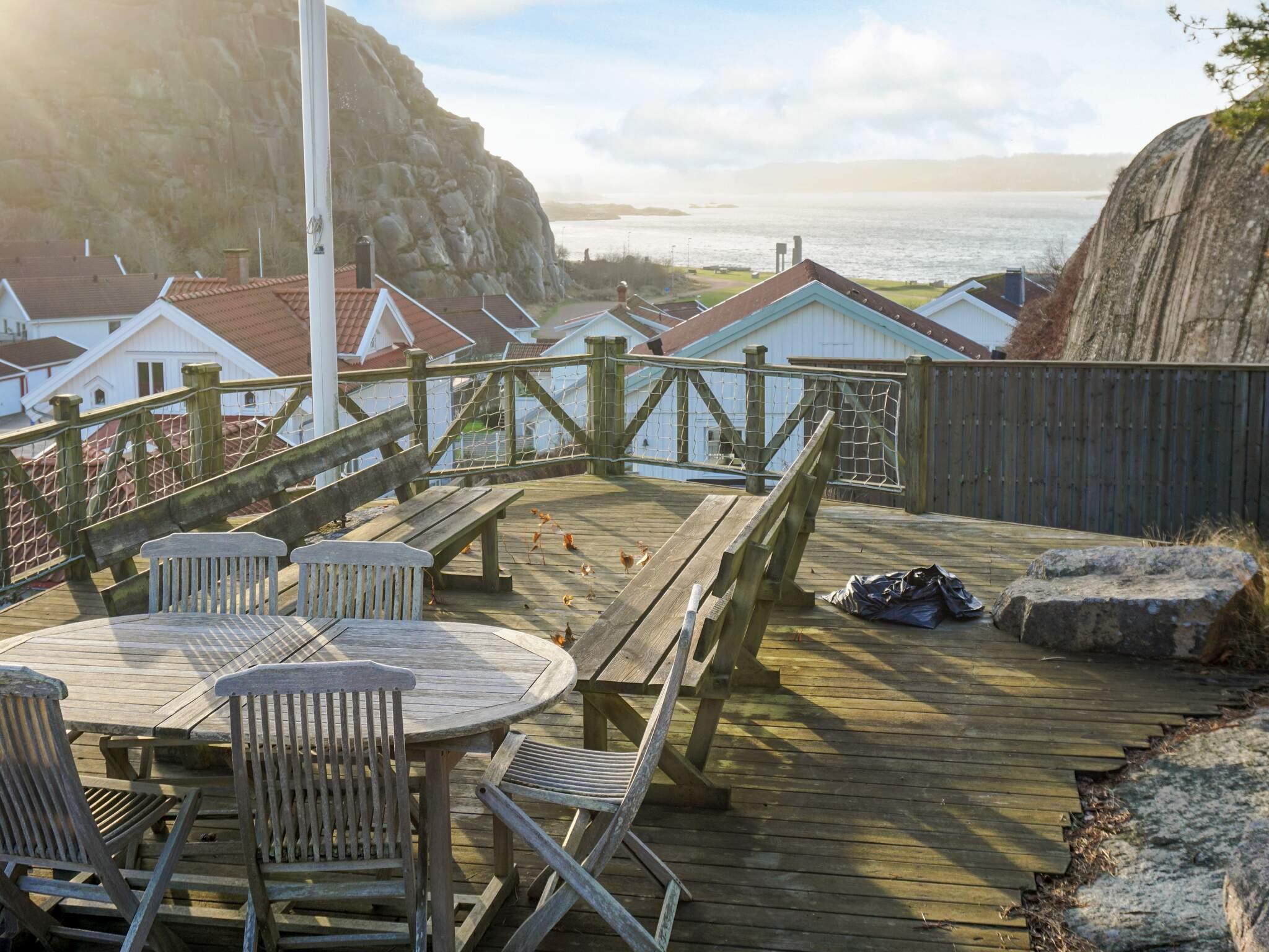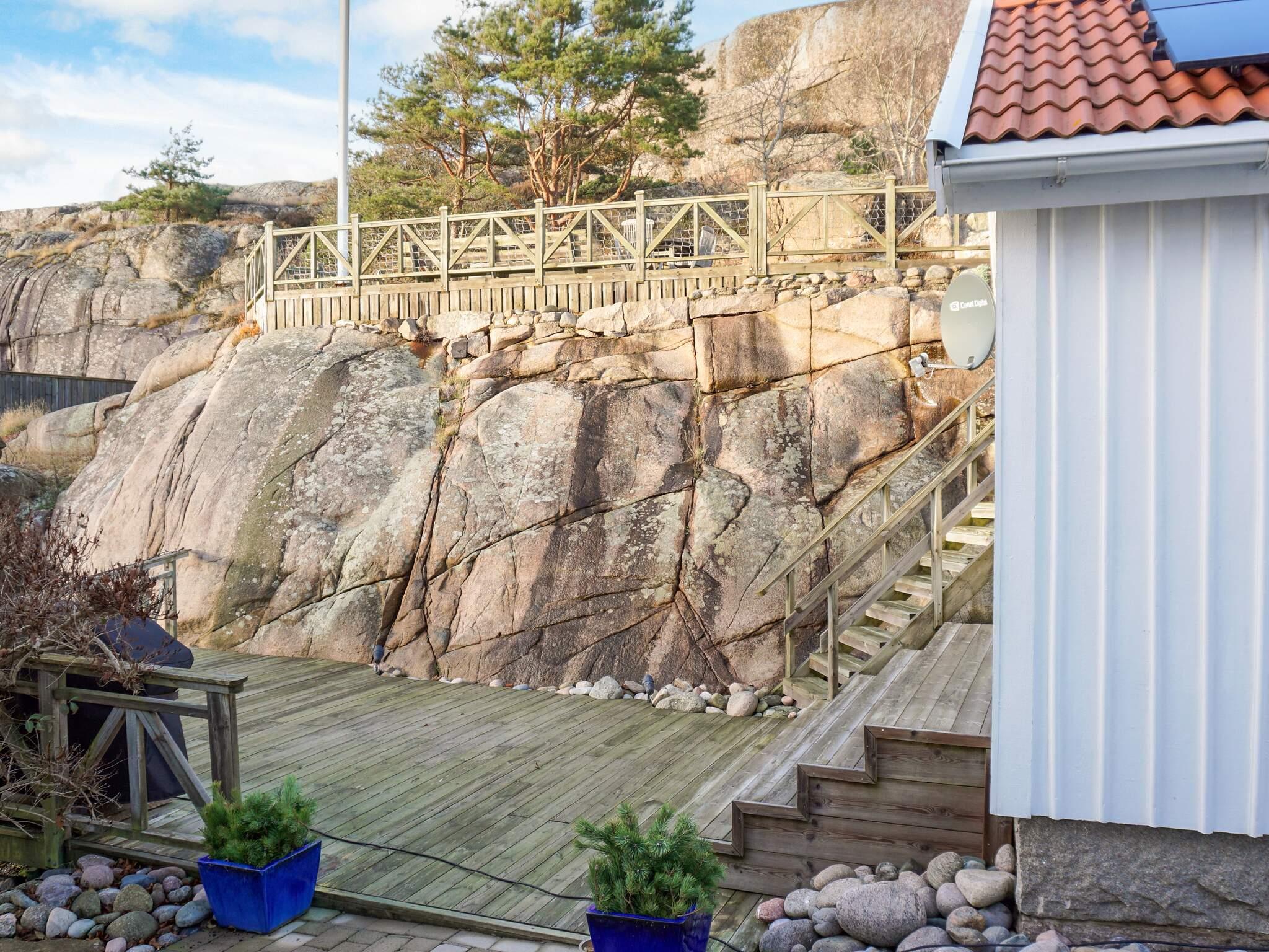 Fastigheten med sitt annex ligger med utsikt över hav och badplats. Annexets entré nås via ett av altanområdena. Väl inne möts ni av en hemtrevlig ombonad miljö, först en entréyta för ytterkläder som sedan går över i en matplats och vidare in i ett pentry med spis, mikro, kyl med frysfack samt kaffebryggare. Innanför pentryt ligger annexets badrum med golvvärme och dusch. Sovrum med 2 sköna enkelsängar, sittvänliga fåtöljer samt TV. Vid sidan av matplatsen finns en inbyggd mysig våningssäng. Från sovrummet kan ni öppna stora dubbeldörrar ut mot altanområdena, ett i anslutning till annexet och det andra via en trappa upp till en platå med strålande utsikt över hav och badplats. Börja gärna dagen med att gå ner till badplatsen och ta er ett dopp, ta sedan en lång härlig frukost på någon av altanområdena eller framåt kvällskvisten så grillar ni er en god bit mat, spelar något spel eller bara njuter av sommar och sol. Boendet har WiFi-uppkoppling. I Hunnebostrands gästhamn finns både tvättmaskin och torktumlare för er som behöver tvätta kläder.
