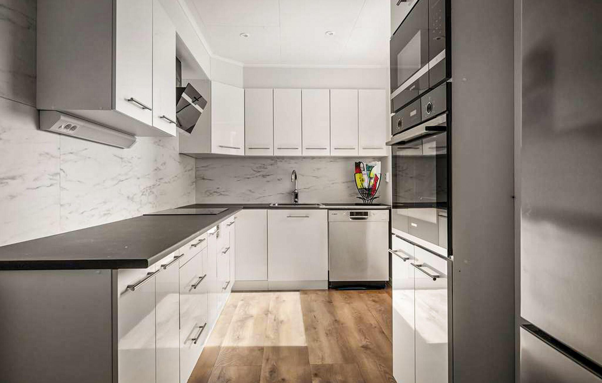 Dette moderne feriehuset ønsker deg velkommen med et friskt og stilfullt interiør med en sentral beliggenhet. De romslige og koselige soverommene gir deg maksimal komfort og inviterer deg til å slappe av etter en begivenhetsrik dag. Den lyse stuen skaper en vennlig atmosfære, og de moderne møblene sørger for at du føler deg helt hjemme her.