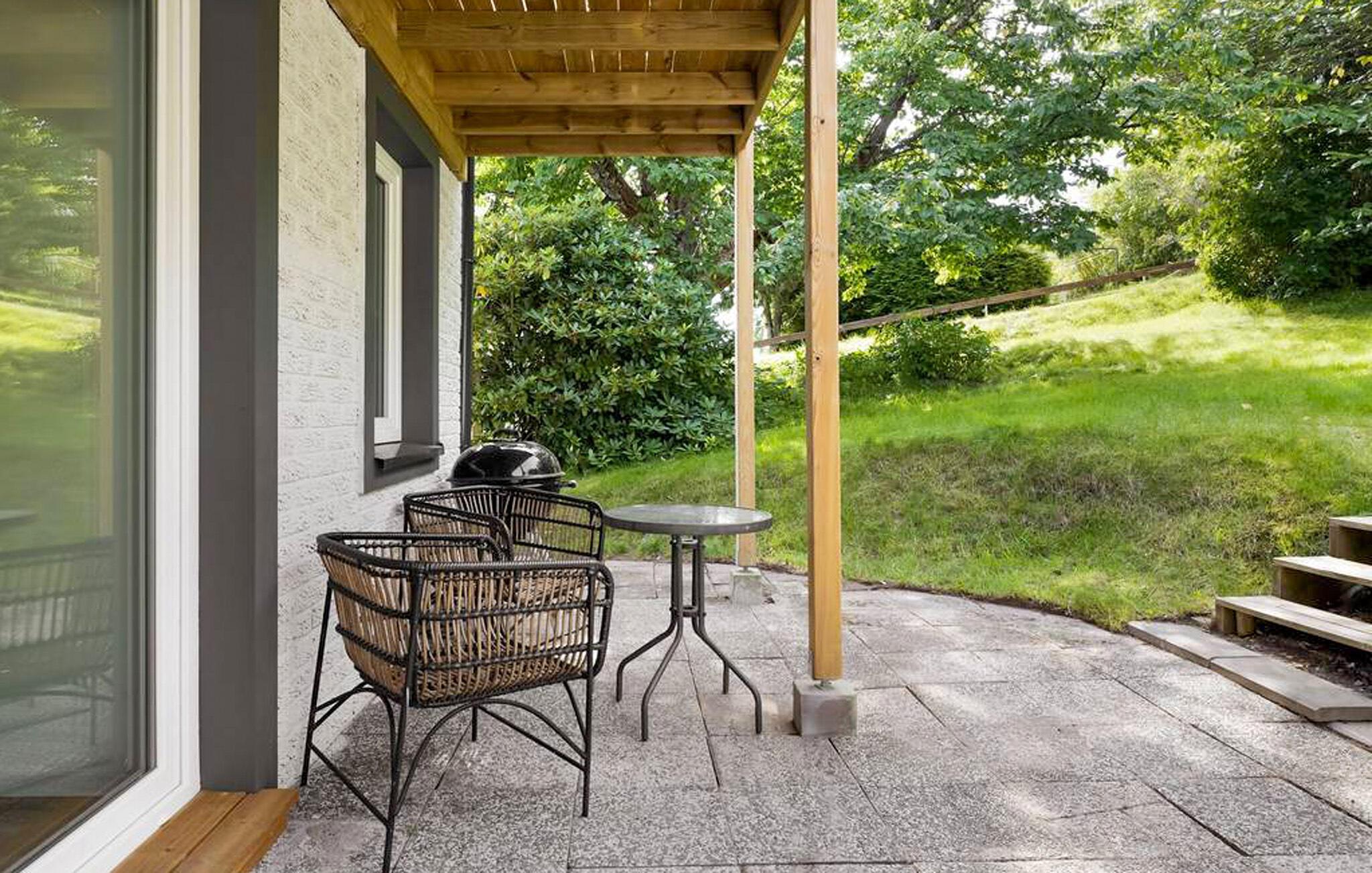Gå også ut, for du kan ikke bare velge mellom to balkonger, men også terrassen med hage for mange timer utendørs. Her kan du slappe av om morgenen med en kopp kaffe eller runde av dagen med en grillfest. Takket være nærheten til sentrum av Jönköping og den imponerende innsjøen Vättern, er dette huset det perfekte utgangspunktet for dine oppdagelsesferder i Sør-Sverige.