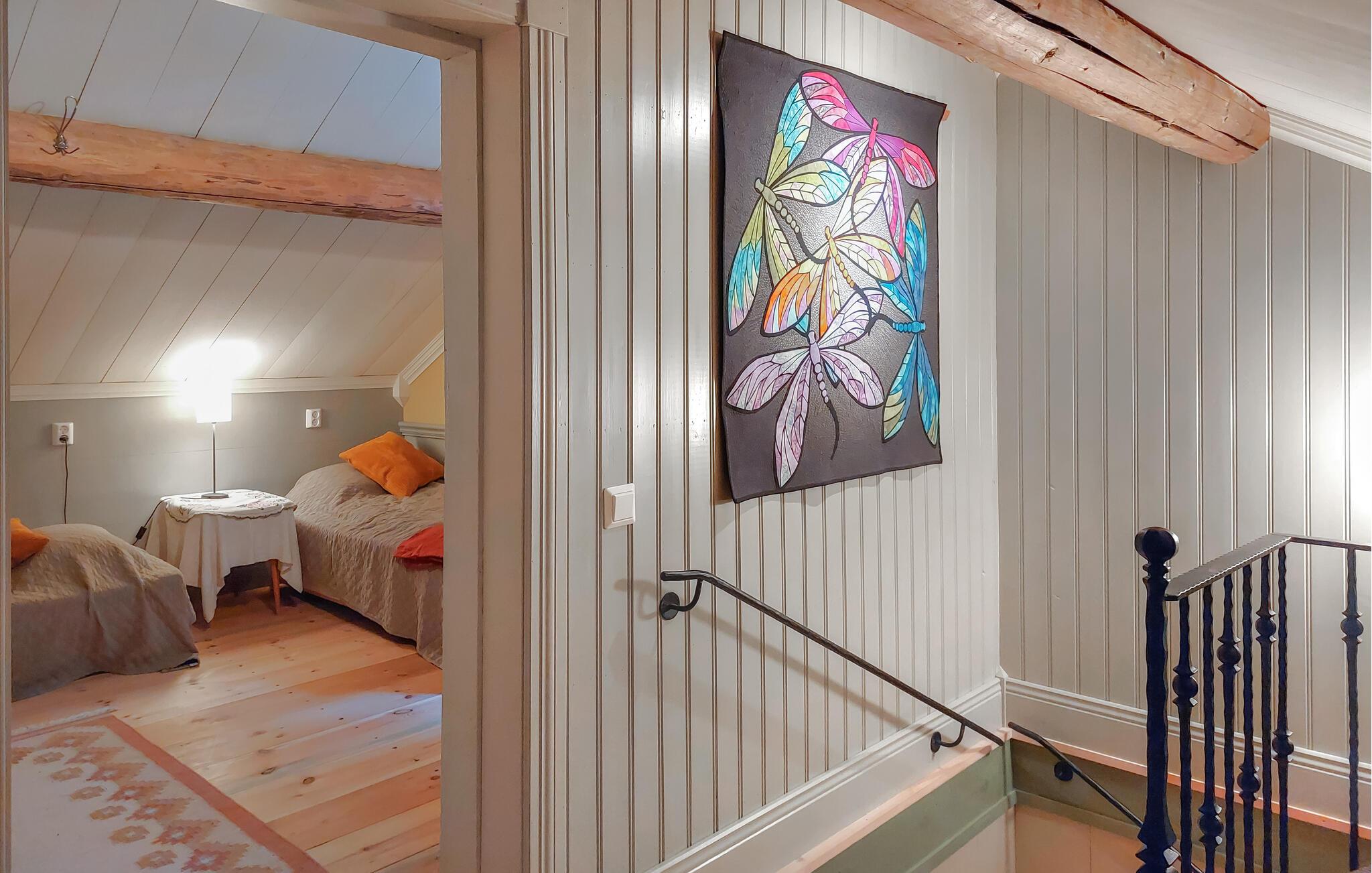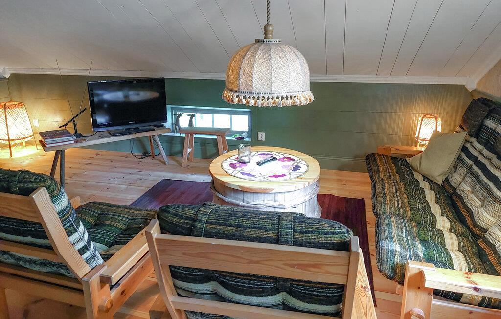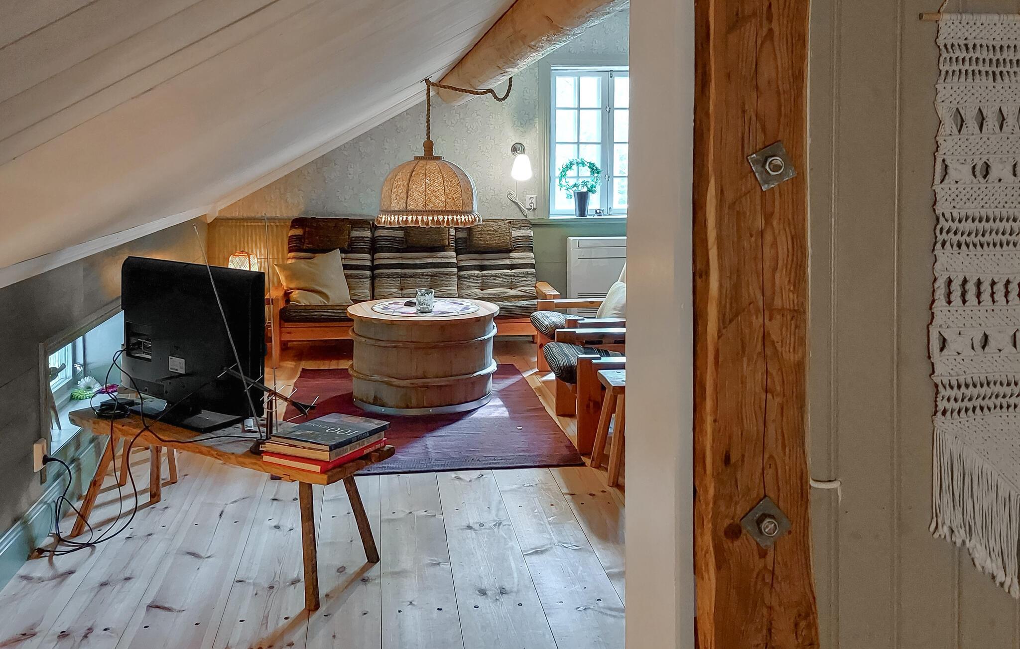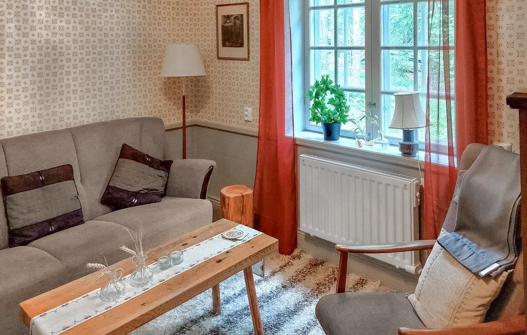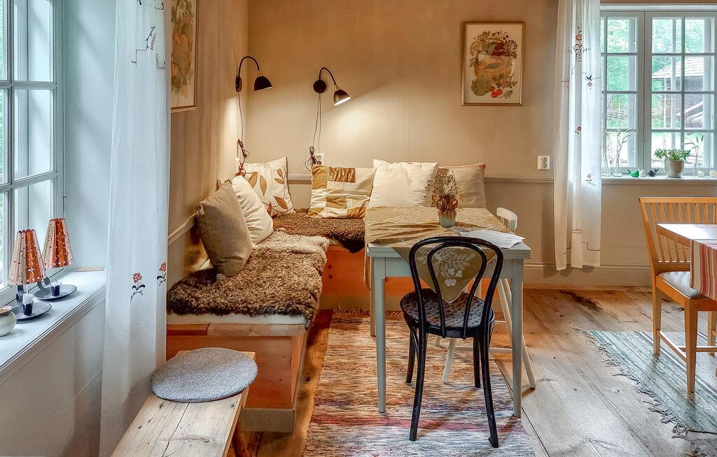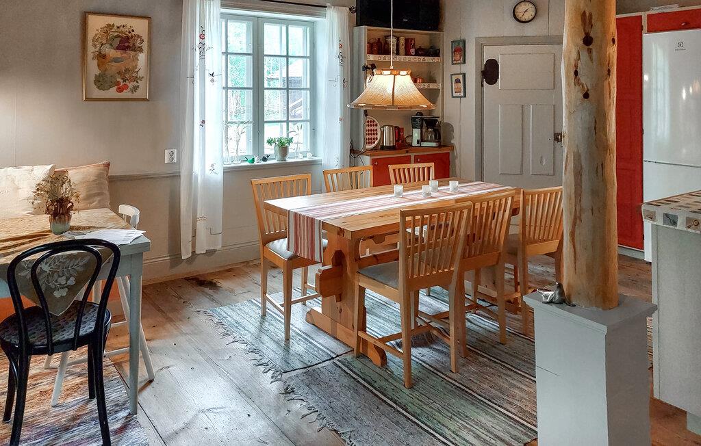 Denne sjarmerende tømmerhytta i Idkerberget, som har røtter flere hundre år tilbake i tid, byr på en unik blanding av historisk sjarm og koselig komfort. Nyt den fredelige beliggenheten midt i skogen og lytt til naturens egne lyder. Den koselige stuen med rustikke trebjelker og en koselig sittegruppe innbyr til avslappende stunder. Sett deg godt til rette i sofaen, les en god bok eller nyt varmen fra den tradisjonelle vedovnen. Det vakre kjøkkenet gir deg muligheten til å tilberede deilige måltider. Bruk det koselige spisebordet i tre til å tilbringe kveldene sammen med familie eller venner.